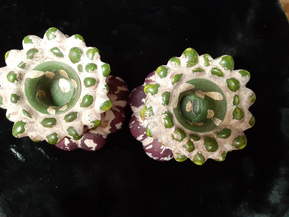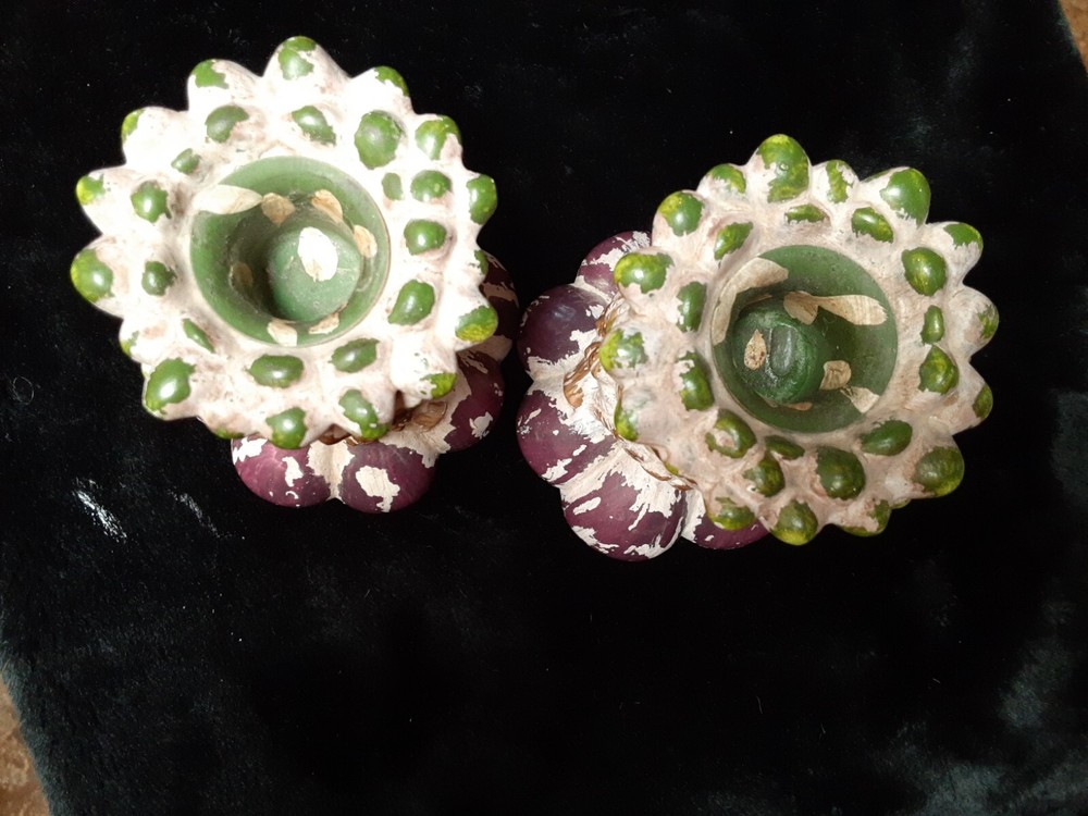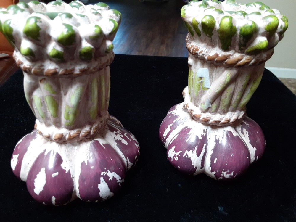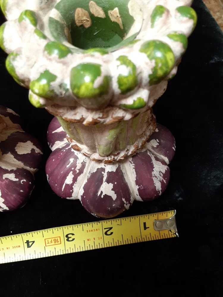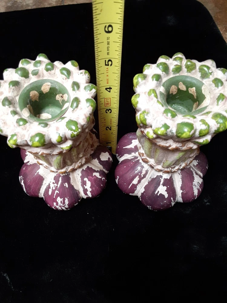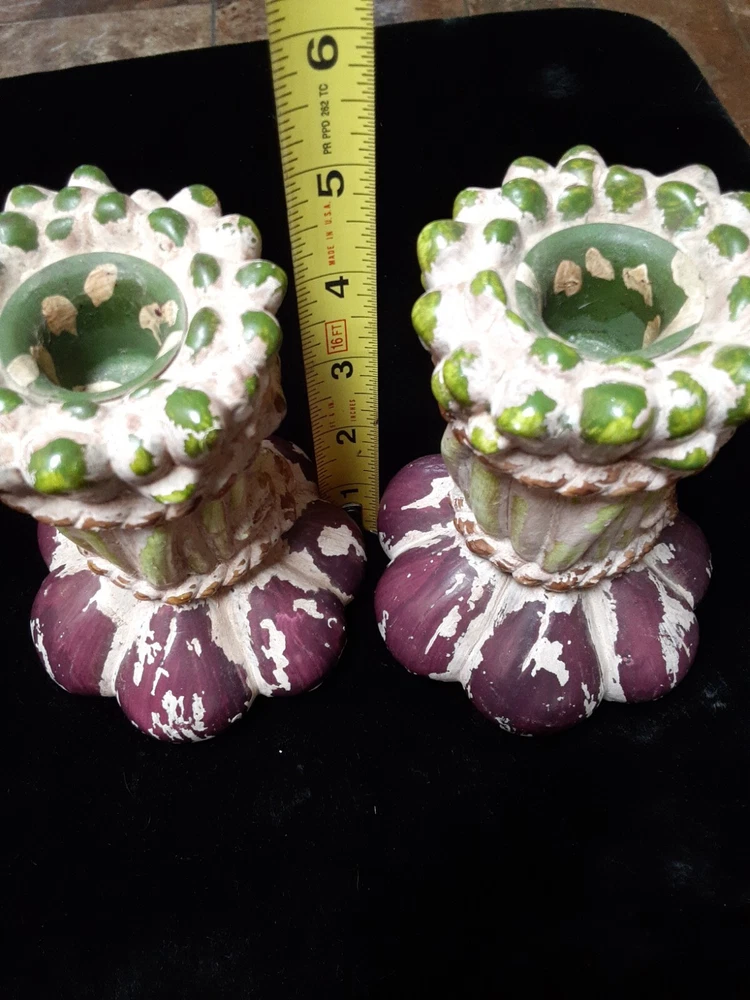 Ceramic Onion candle holders Vintage Kitchen decorations These candle holders are in good condition. They do not have chips or cracks. I do not see a brand on bottom of the holders Unknown brand, Used items 5inch tall 2.5inch wide