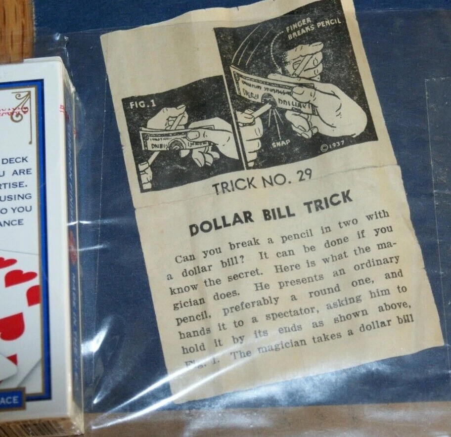 ***** Well, THE MAGIC GADGET SITE wants to THANK all our customers who have supported TMGS for over 15 years!! And if you are new to TMGS, you can learn more about any of our items and our fast, friendly service by visiting THE MAGIC GADGET SITE eBay store. Share the magic! ****** SPRING CLEAN-UP SALE -- I am literally up to my eyeballs in magic I have not had time to list, (Okay, I'm up to my ankles, or mid-calves... but there's a LOT of great stuff). And I have to clear it our fast before I trip on a box of vintage magic, fall into the clutter and vanish from the earth forever :-) So I am listing items with very little description, and just one or two photos. (I know, I always say I won't have much description, and then I write a short essay about the trick... But this time, I mean it! Since I am not spending a lot of time on the listings, I will make the prices extra great! If you know your magic, you will recognize many items and know they are a great deal here. Or if you don't know the item, but you trust me to only offer you excellent items, at a great value, then you can find some real bargains. Look at photo(s) -- what you see is what you get Researching this item, I learned a lot about Raisin Bran :-) This is a box stuffer coupon offer from Skinner's Raisin Bran. Turns out that Skinner's Pasta Company of Omaha, NE was the first to invent the popular cereal known as Raisin Bran. This happened in the 1930's, and the successfully sued Kellogg's in 1943 over the rights and royalties. Skinner's continued to make Raisin Bran, and included advertising collateral in the box -- sometines metal tokens, and also coupons like this one. This coupon is about the size of a poker deck of cards, and has info about how to get a magic kit on one side (if you collect 3 coupons), and a simple magic trick on the other -- the trick is the one where you break a pencil with a dollar bill. I have no idea what year these came from -- probably 1960's, but maybe earlier... It is photographed in a plastic sleeve to keep it from any damage, and will ship like this. But it does come out of the plastic easily, of course. A nice collectable for lovers of offbeat magic ephemera. Read condition notes please! CONDITION NOTES: previously owned, but in very good condition -- some wrinkles, and short edge tear near the word "Free". DECK OF CARDS IN THE PHOTO IS NOT INCLUDED -- JUST THERE FOR SCALE. +++++++++++ ***** Yes, we will combine multiple eBay wins into a single shipment to help lower the overall shipping costs. We hold eBay wins for up to ten days if you are still bidding on other TMGS eBay auctions. For multiple item shipments, you pay the highest quoted shipping cost, plus half the quoted shipping for each additional eBay item. You can also combine eBay wins with purchases from THE MAGIC GADGET SITE eBay store to leverage postage costs. Postage for your entire shipment will be quoted when all items are combined. packed and weighed. Rest assured, we at TMGS dislike high postage rates as much as you do, so we will work to keep them as low as possible. ******** (Note: apologies to International bidders, but the US Postal service has raised rates on January 27th this year, particularly for International shipments. Our shipping charges have been adjusted to reflect this. We are still committed to keeping shipping costs as low as possible, and will always combine multiple ebay wins into a single shipment to save you postage costs!)