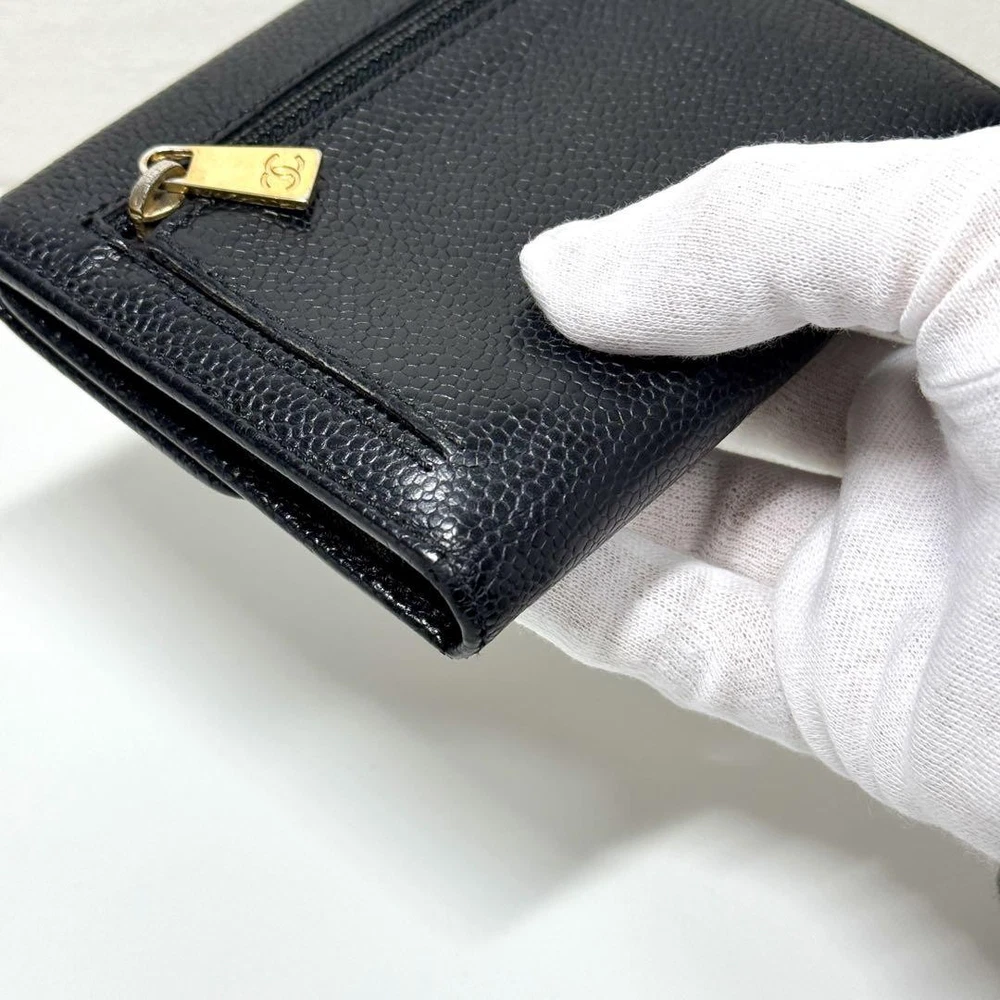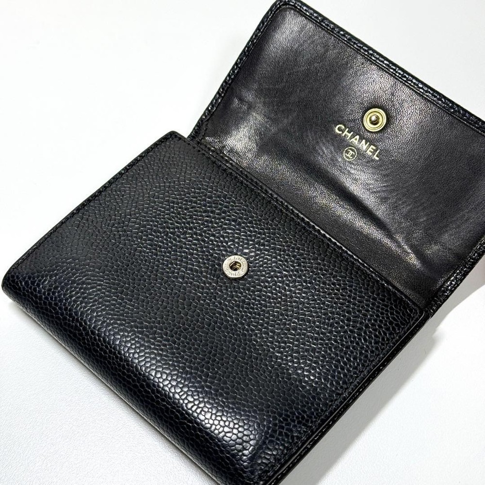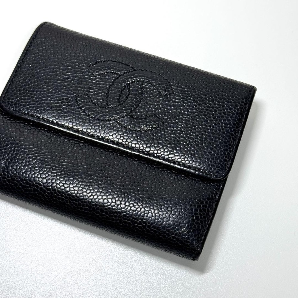 Chanel Vintage Caviar Leather Tri-Fold Wallet Black Big Coco Used Key Features - Brand: CHANEL - Product: Tri-fold wallet - Model: Vintage Chanel - Material: Caviar leather - Color: Black - Size: approximately 4.7 x 3.7 x 0.8 inches (12 x 9.5 x 2 cm) - Condition: B (outer is clean, interior shows signs of use) - Features: Certified authentic from a reputable antique market, serial seal included - Note: No accessories are included unless noted in the title or product description. If you have any questions, please ask before purchasing. Specifications Brand Chanel Country Japan Type Wallet Color Black Style Vintage Features Fold Material Leather Vintage Vintage Product Description Item Title Chanel Tri-Fold Wallet Caviar Skin Big Coco Black Vintage Payment Supports managed payments Please pay within 5 days after auction is finished. About Us We are located in Japan. It's our pleasure to make you happy by proposing our recommend item. If you have any questions or request about items, please feel free to ask us. International Buyers - Please Note: -Import duties, taxes, and charges are not included in the item price or shipping charges. These charges are the buyer's responsibility. -Please check with your country's customs office to determine what these additional costs will be prior to bidding/buying. -These charges are normally collected by the delivering freight (shipping) company or when you pick the item up - do not confuse them for additional shipping charges. -We do not mark merchandise values below value or mark items as - gifts - The US and International government regulations prohibit such behavior. Thank you for your understanding.