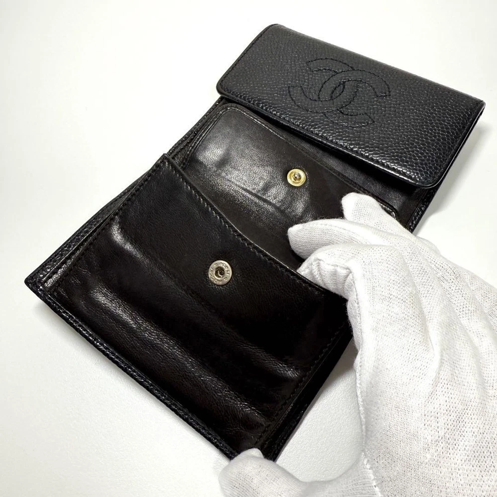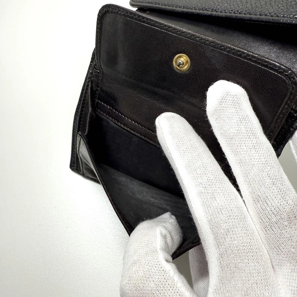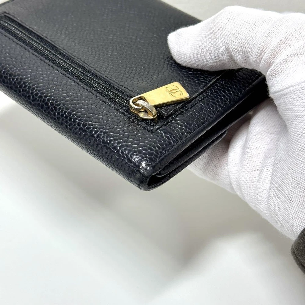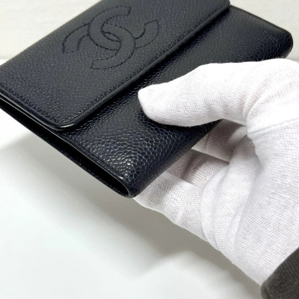 Chanel Vintage Caviar Leather Tri-Fold Wallet Black Big Coco Used Key Features - Brand: CHANEL - Product: Tri-fold wallet - Model: Vintage Chanel - Material: Caviar leather - Color: Black - Size: approximately 4.7 x 3.7 x 0.8 inches (12 x 9.5 x 2 cm) - Condition: B (outer is clean, interior shows signs of use) - Features: Certified authentic from a reputable antique market, serial seal included - Note: No accessories are included unless noted in the title or product description. If you have any questions, please ask before purchasing. Specifications Brand Chanel Country Japan Type Wallet Color Black Style Vintage Features Fold Material Leather Vintage Vintage Product Description Item Title Chanel Tri-Fold Wallet Caviar Skin Big Coco Black Vintage Payment Supports managed payments Please pay within 5 days after auction is finished. About Us We are located in Japan. It's our pleasure to make you happy by proposing our recommend item. If you have any questions or request about items, please feel free to ask us. International Buyers - Please Note: -Import duties, taxes, and charges are not included in the item price or shipping charges. These charges are the buyer's responsibility. -Please check with your country's customs office to determine what these additional costs will be prior to bidding/buying. -These charges are normally collected by the delivering freight (shipping) company or when you pick the item up - do not confuse them for additional shipping charges. -We do not mark merchandise values below value or mark items as - gifts - The US and International government regulations prohibit such behavior. Thank you for your understanding.