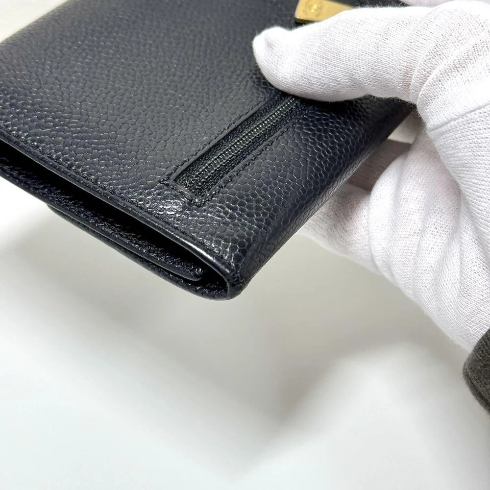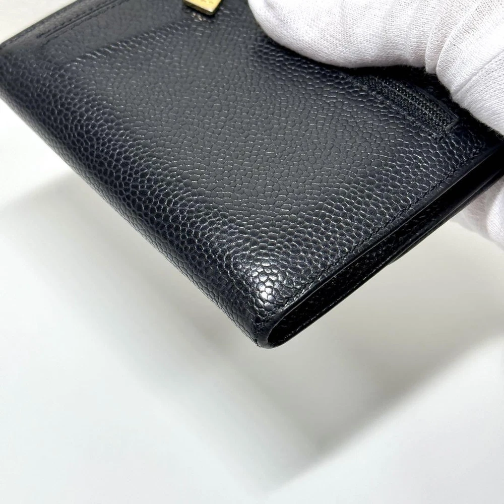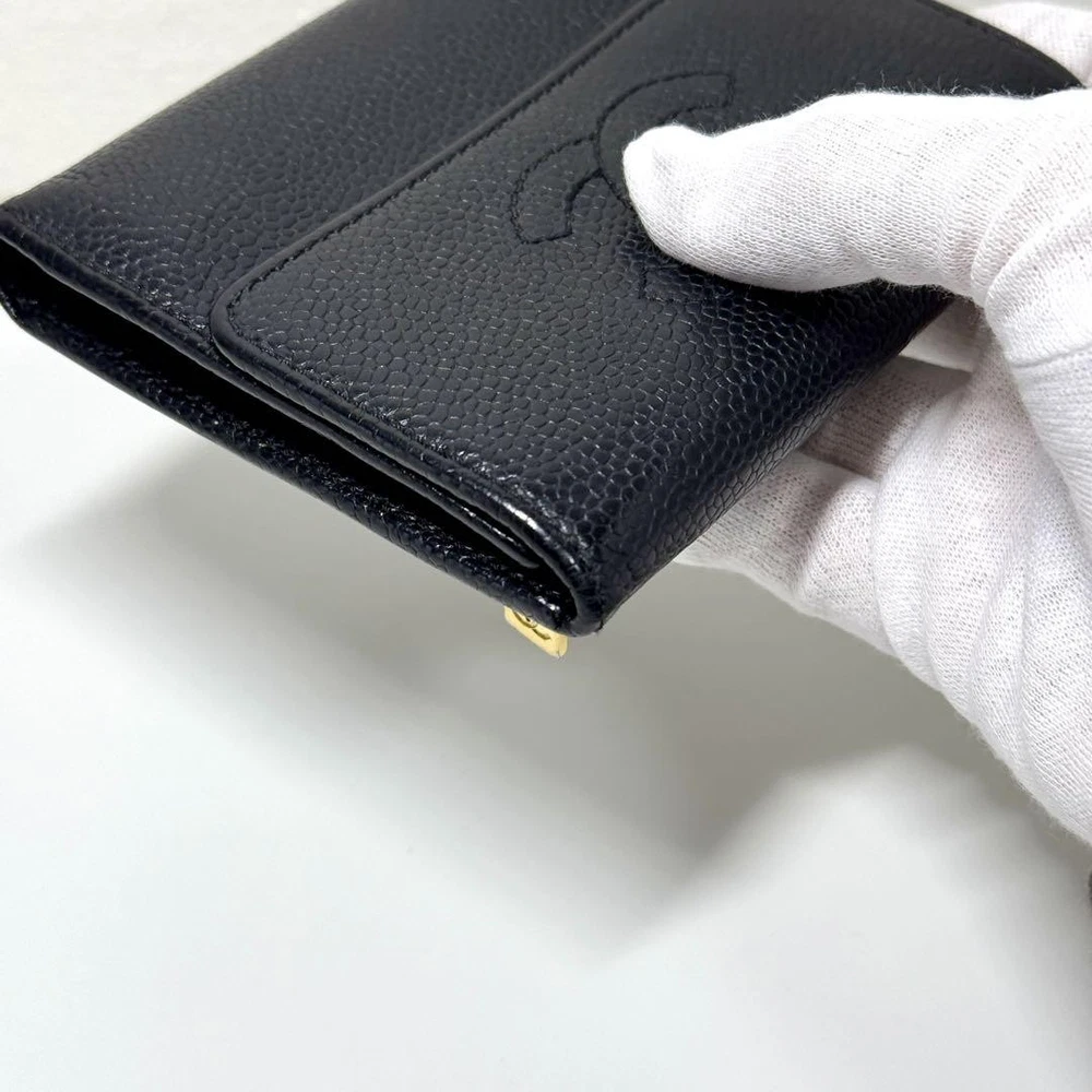 Absolutely love this vintage Chanel wallet! The caviar leather is so durable and luxurious, and the tri-fold design is super practical. Even though it’s pre-owned, it still looks chic and well-maintained. The classic black with the big Coco logo is timeless—perfect for everyday use. It fits all my cards and cash without being bulky. Definitely a great find for any Chanel lover!
