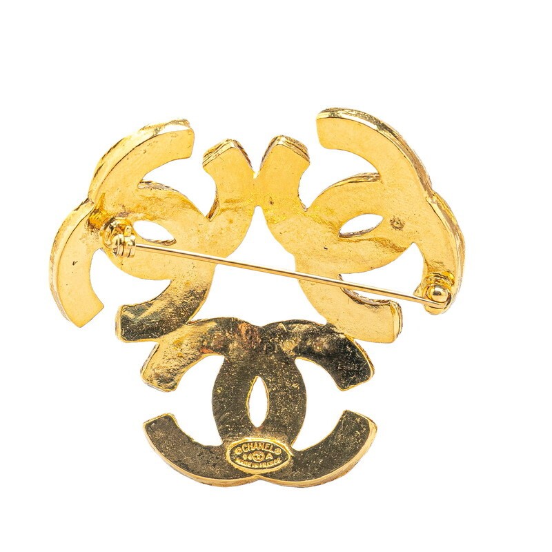 Vintage Chanel Coco Mark Gold Plated Brooch 3881