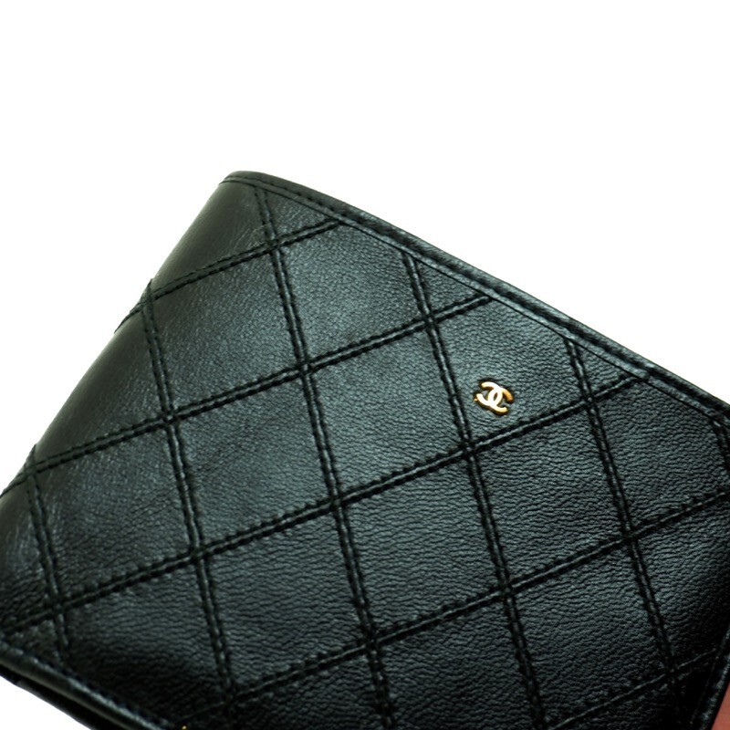Vintage Chanel Excellent Condition Double Stitched Wallet. Color : Black. Year : 1986. Material : Leather. Made in France. Comes with : Sticker, This is an authenticity guaranteed Vintage CHANEL Double Stitched Wallet. It is in excellent condition. No big damages found. Excellent corners. You can store cards and bills. Made in France. Hologram sticker attached inside. Measurements : W 11 cm x H 9 cm x D 1 cm W 4.3 in x H 3.5 in x D .4 in All measurements are approximate and are very reasonably accurate. 6869