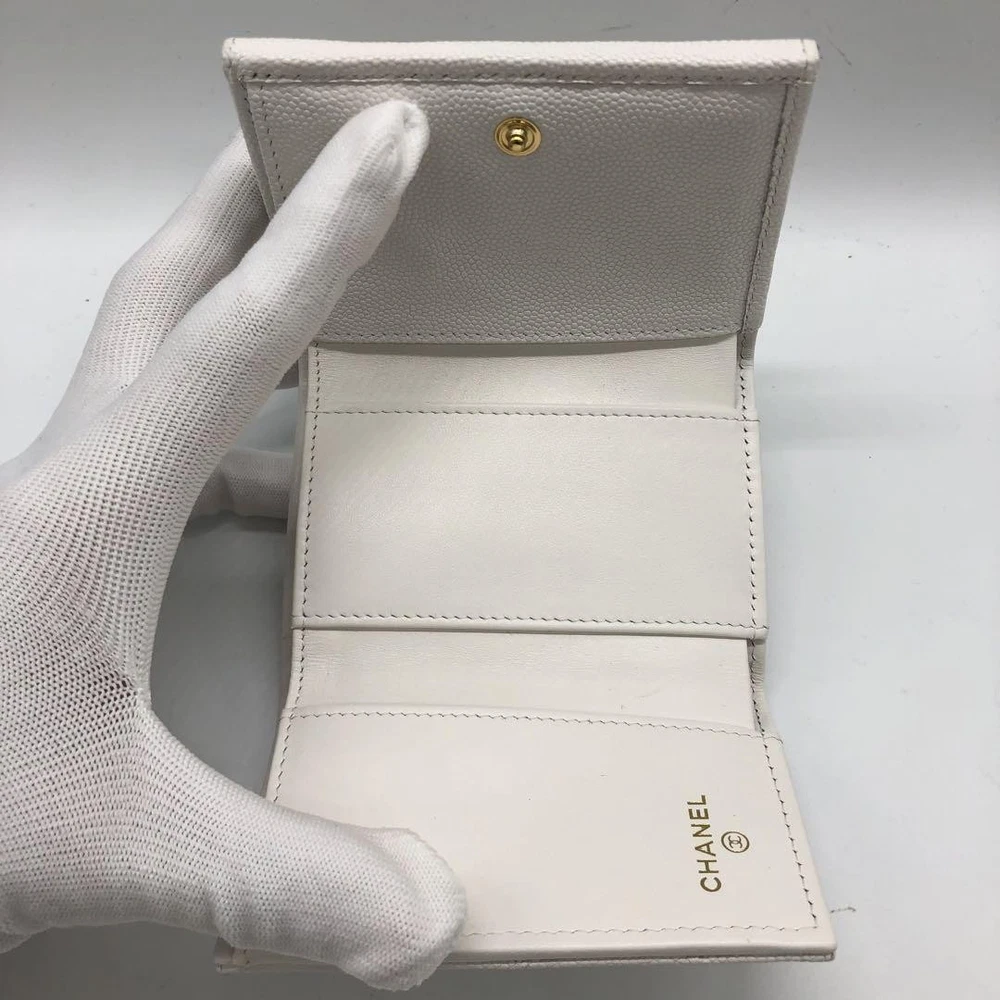 Rare Chanel Matelasse Small Flap Wallet Key Features Chanel Small Matelassé Caviar Leather Flap Wallet with Coco Mark and Trump Card Motifs. Features a compact fold design with snap button closure, one bill compartment, one coin pocket, three card slots, one external pocket, and three internal pockets. Made from white leather, measuring approximately 7.5cm x 10.5cm x 3.5cm. Condition: AB rank – minimal signs of use, overall excellent. Some minor damage on corners and slight dirt in coin pocket. Authentic and inspected by Japanese resale and authentication experts. Perfect for collectors or everyday use. Item Specifics: Brand: Chanel Model: Matelassé Caviar Small Flap Wallet Material: Leather Color: White Size: 7.5cm x 10.5cm x 3.5cm Features: Card slots, coin pocket, bill compartment, external pocket Condition: AB (Very good, minimal signs of use) Specifications Brand Chanel Country Japan Product Description Description Thank you for your interest. This item is not new, but a used item that was given away. Please check the photos for the condition of the item. Please understand that the condition of the item is subjective and the standard of evaluation and feeling may vary from person to person, so please be aware that this is a used item before bidding. Please check the photos for the condition of the item, such as scratches and stains. To prevent problems, please feel free to contact us if you have any questions about the size or other details of the item. We will be happy to adjust the price. We will do our best to ship your order as soon as possible. We will do our best to ship as soon as possible, but there may be delays during the busy harvest season. Remarks All the products we sell are obtained and sold by pawn shops that are authorized brands, so all the products we handle have been authenticated to meet our strict standards for authenticity, so please buy with confidence. Payment Supports managed payments Please pay within 5 days after auction is finished. About Us We are located in Japan. It's our pleasure to make you happy by proposing our recommend item. If you have any questions or request about items, please feel free to ask us. International Buyers - Please Note: -Importduties, taxes, and charges are not included in the item price or shipping charges. These charges are the buyer's responsibility. -Please check with your country's customs office to determine what these additional costs will be prior to bidding/buying. -These charges are normally collected by the delivering freight (shipping) company or when you pick the item up - do not confuse them for additional shipping charges. -We do not mark merchandise values below value or mark items as - gifts - The US and International government regulations prohibit such behavior. Thank you for your understanding