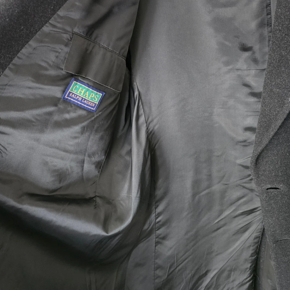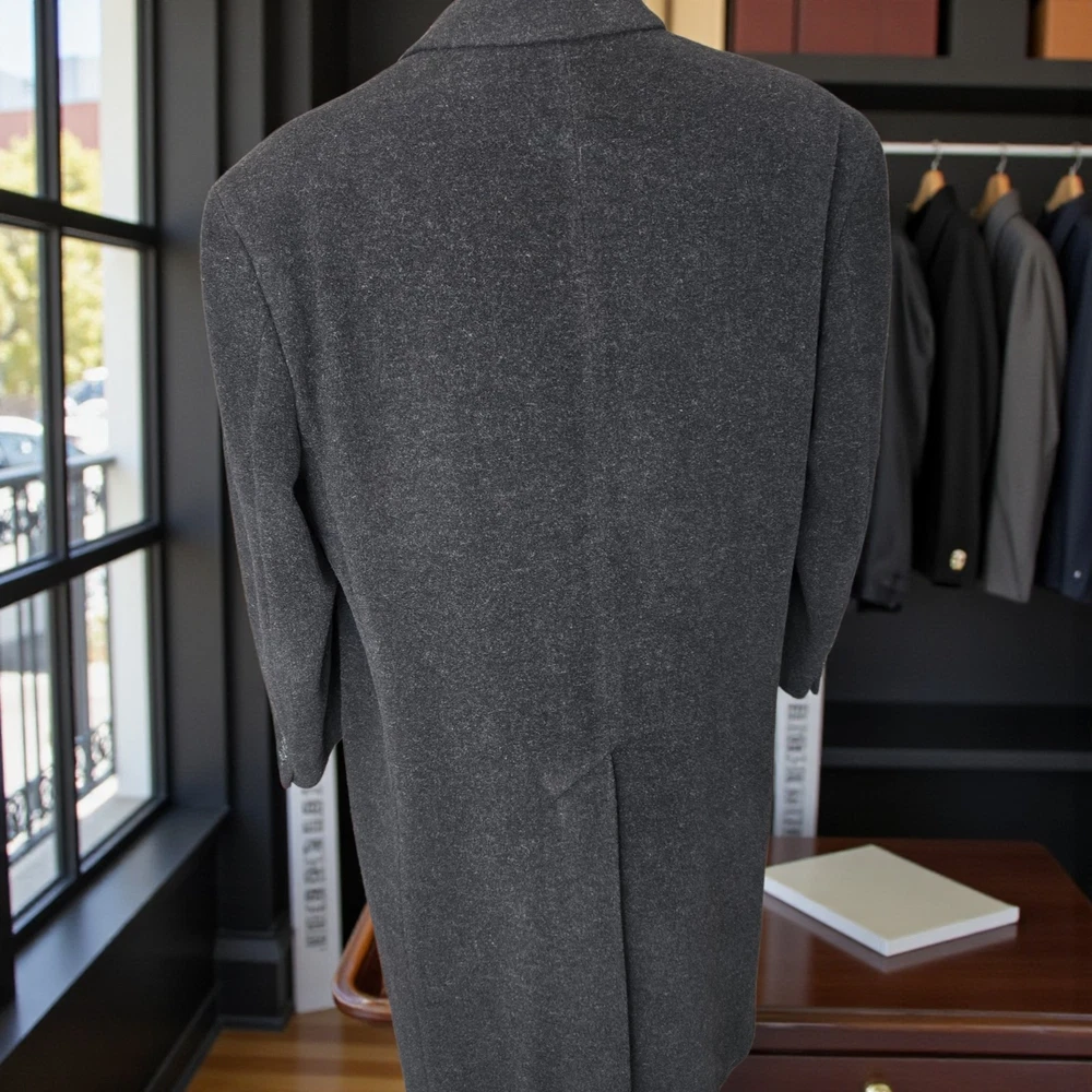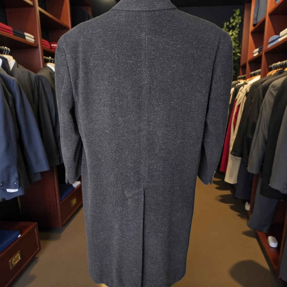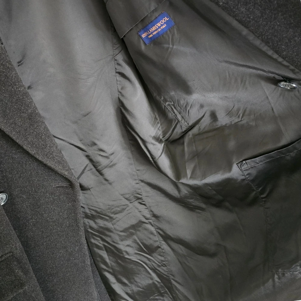 Size: 44S USA with ***24-inch arm length*** and a jacket length of 45 inches. For complete measurements, see photo #2 To see exactly how we measured, see the last series of photos. Condition: excellent vintage condition. No holes , no snags, no smells, no stains Woven in Italy, lambswool flannel, light shoulder pads, medium weight Return policy: We offer free shipping and no returns. We can not afford to offer both in the highest return category on eBay. It becomes very expensive to mail out items for free for people to try on if they are not confident in checking the measurements in picture #2. If you prefer to have the ability to return the item and pay $17.95 shipping, please send us a message, and we can change the listing format to offer returns. The $17.95 shipping cost would break us out even in the case you needed to return the item. You must contact us upfront to make sure the owner of this consigned item is OK with an option to return. We ship the next business day after the payment is made.