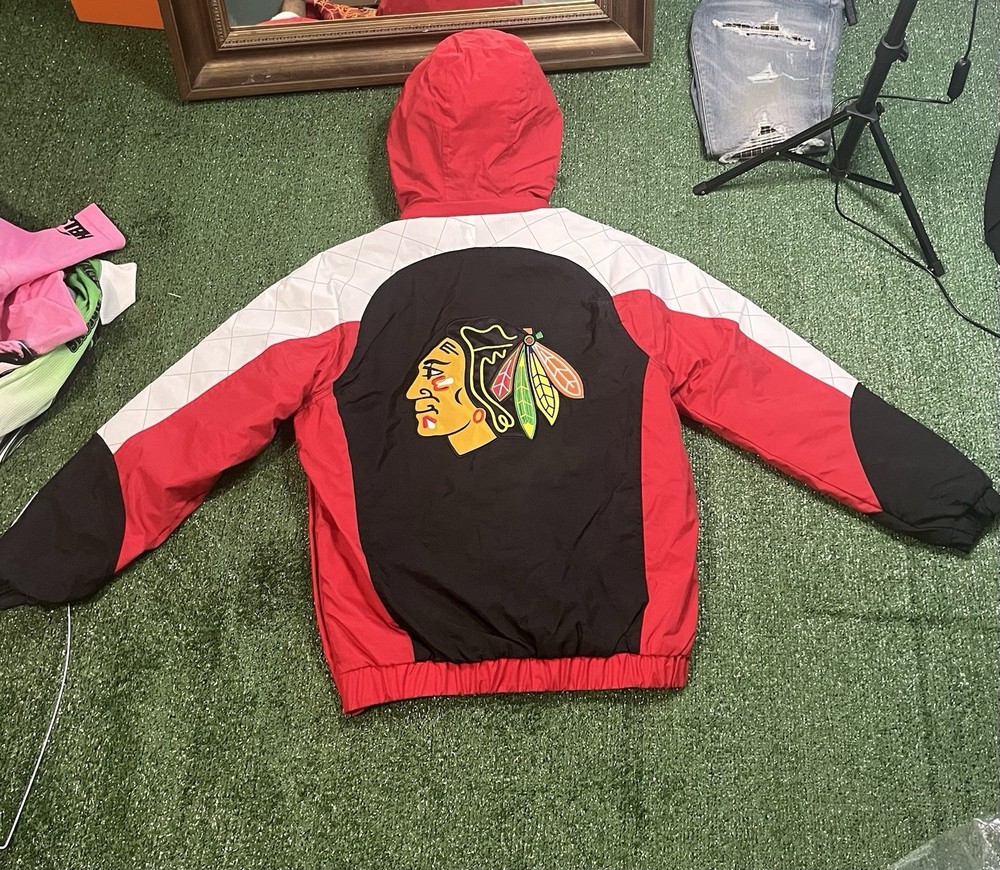 Country/Region of Manufacture: Indonesia Brand: Starter Gender: Men Officially Licensed: Yes Color: Red Team: Chicago Blackhawks Product: Jacket League: National Hockey League (NHL) Sport: Hockey Size: S Pre & Post Season: Regular Season