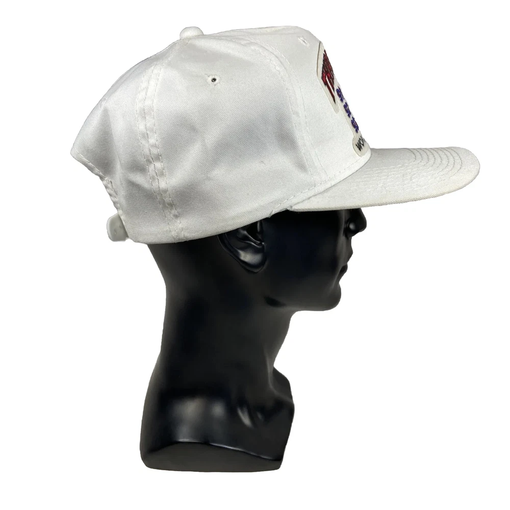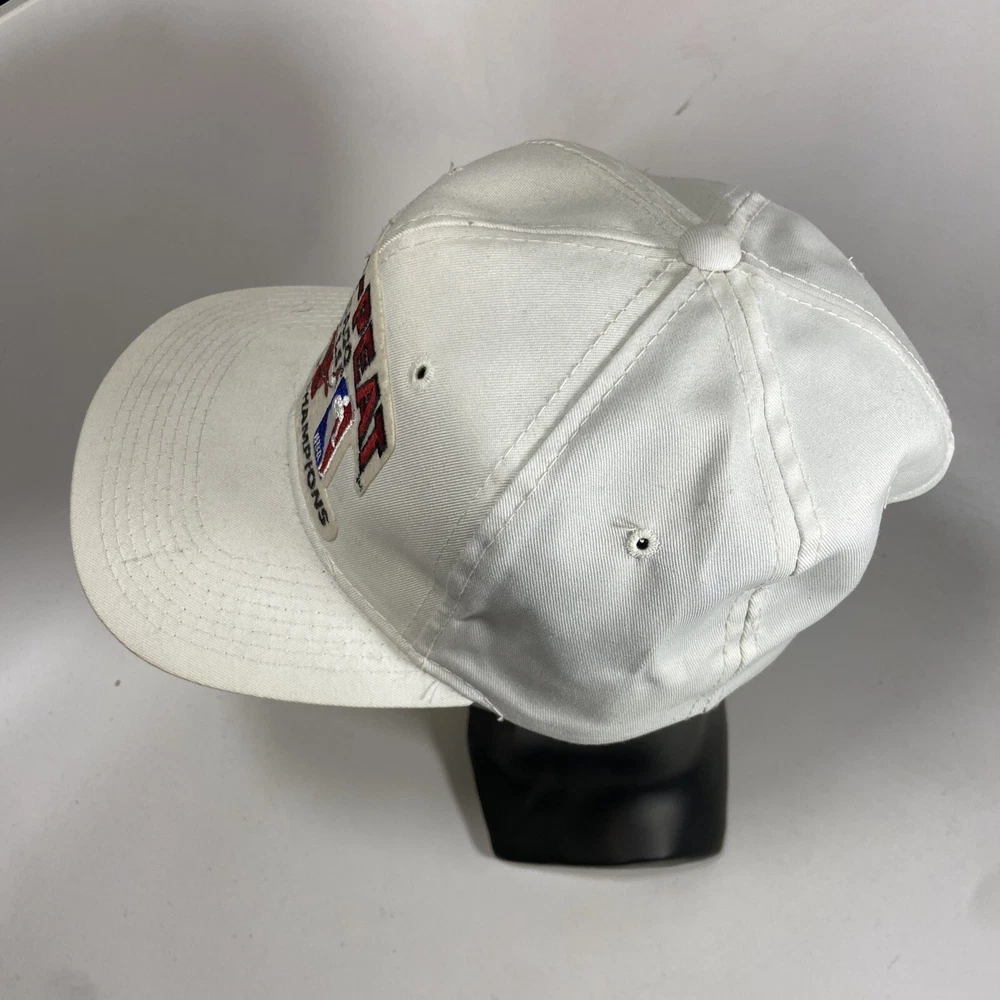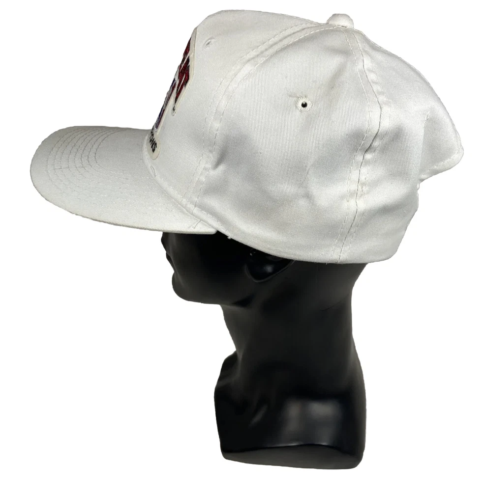 This vintage Chicago Bulls hat is a must-have for any basketball fan! Celebrate the team's 3 championship wins with this sports specialties hat featuring Michael Jordan's iconic team. The white cap is one size fits all and is suitable for both men and women. The hat is an authentic piece of fan apparel for NBA enthusiasts and supporters of the Chicago Bulls.