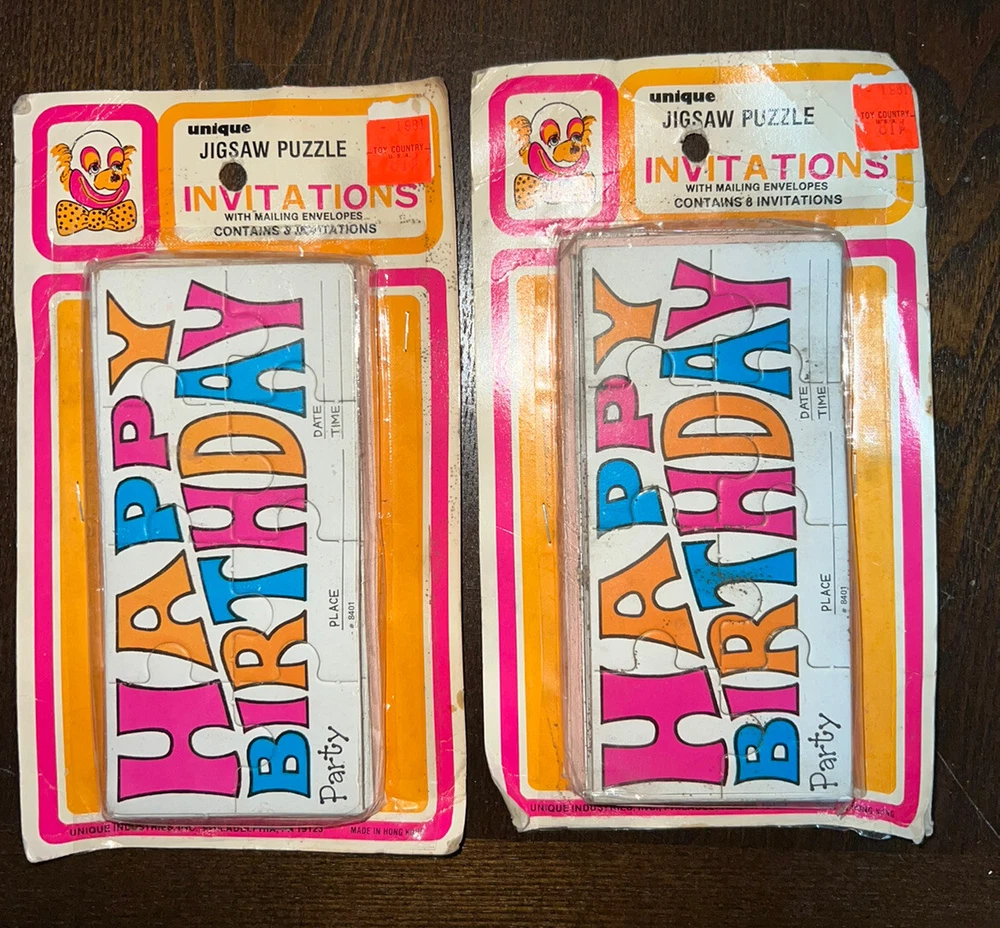 Vintage Childrens Jigsaw Puzzle HappyBirthday Party Invitations UNOPENED 1960s. 2 packs of 8 invitations and envelopes.