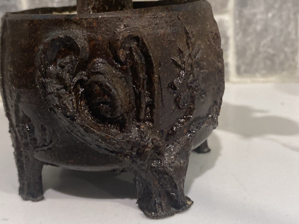 Bring elegant vintage charm into your home with this beautiful handcrafted gemstone bonsai tree. This delicate display features hand-carved stone flowers in soft hues of pink, yellow, lavender, and green jade-like leaves, all arranged on wire stems in a realistic tree trunk. It is set in a richly detailed, ornate carved metal pot filled with white gravel. Features: • Handcrafted gemstone flowers • Ornate carved metal pot with tripod base • Approx. height: 8” | Width: ~6” • Condition: Good vintage condition; some light wear and minor natural imperfections typical of handmade vintage items • Weight: Substantial, sturdy base Perfect For: • Vintage decor lovers • Feng Shui displays • Asian-inspired decor themes • Gift or collection piece