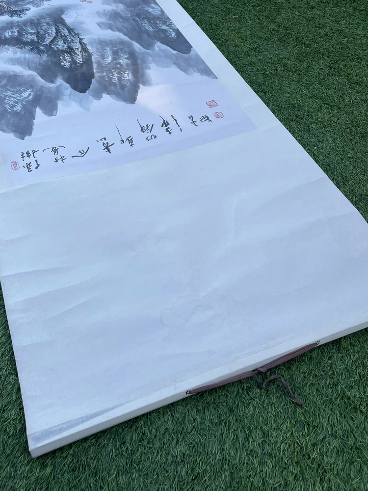 Vintage Chinese Hand Painted Watercolor Wall Hanging Scroll Painting Signed. Beautiful very large vintage/ antique water color painting. In good condition. Two small water stains near top portion. Small tear in top left side (still hangs even and looks great). 69" x 23". Wood Scroll handle is 27" wide. See pictures for further condition and measurements. You'll receive the exact item pictured.