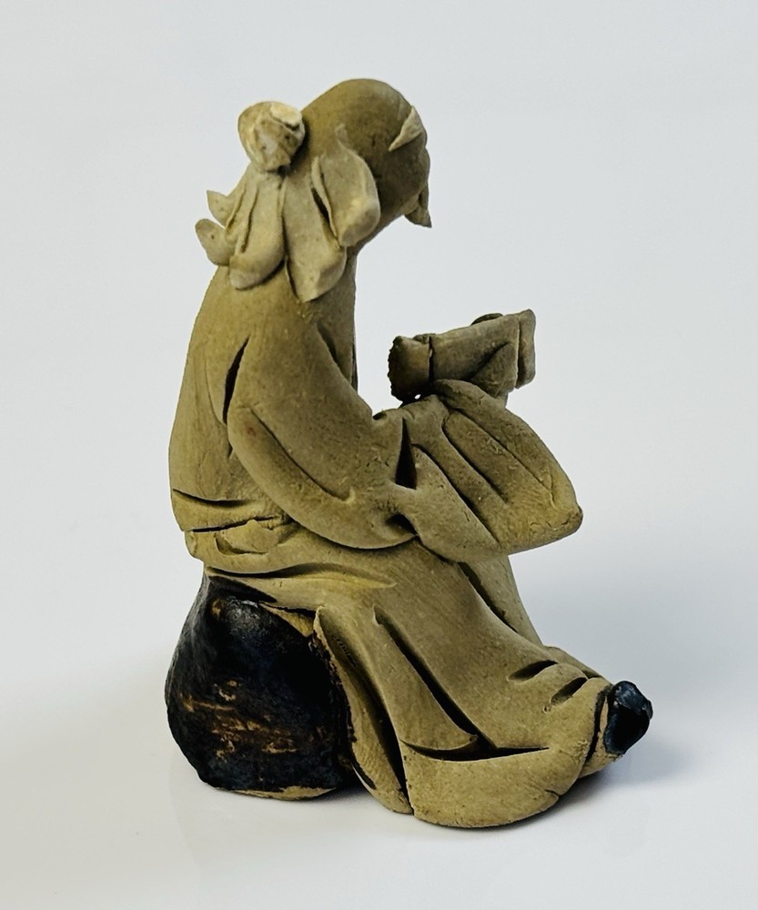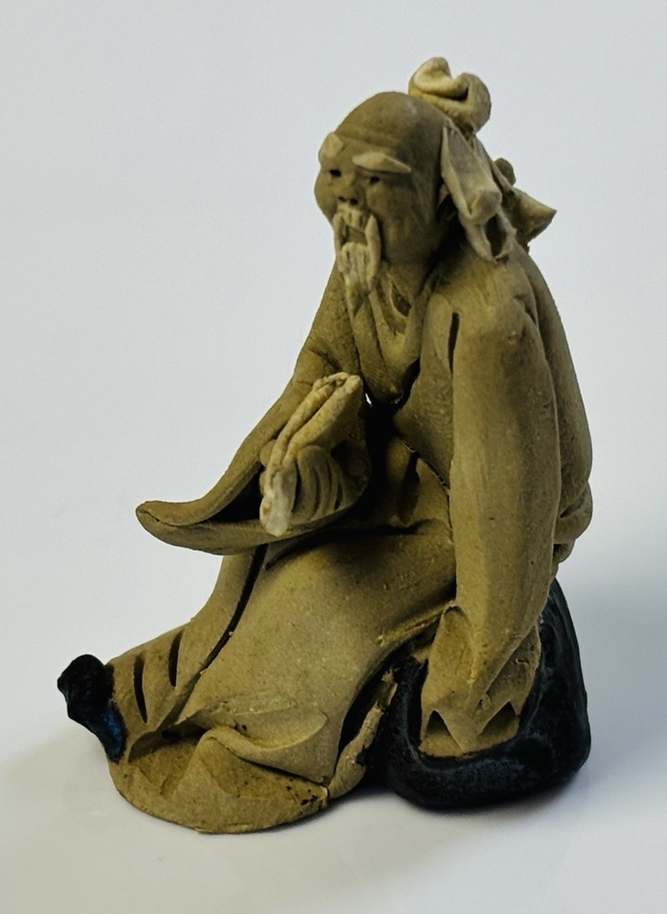Vintage Chinese Mudman Figurine – Seated Scholar – 2” Clay Sculpture •Charming vintage Chinese Mudman figurine—seated elderly scholar holding a scroll •Crafted from clay with hand-formed details and expressive facial features •Traditional robe with black glaze accents on feet and base •Stands approximately 2 inches tall •Unmarked on the base, consistent with older handmade examples •Great condition with some age-related wear and light scuffing Ideal for collectors of vintage Asian figurines, scholar-themed decor, or miniature clay art. Ships with care.
