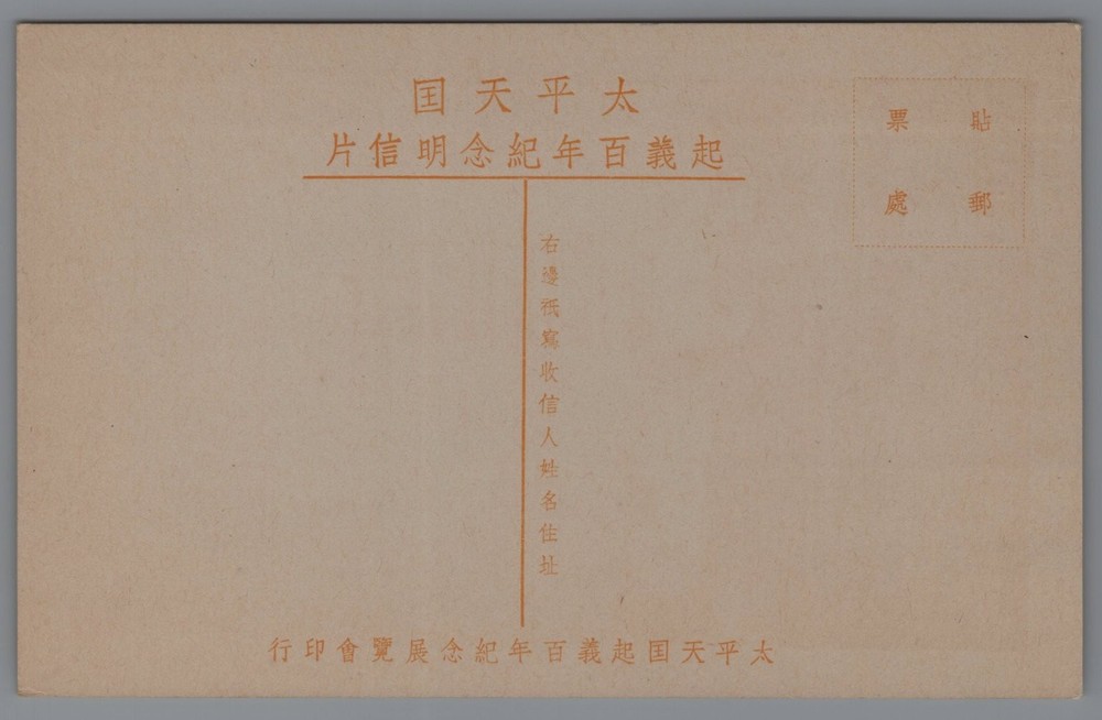 This vintage postcard showcases a detailed illustration of two women dressed in traditional attire from the Taiping Heavenly Kingdom era in China. The drawing is rendered in a classic monochrome style, highlighting the intricate patterns on the garments and the distinctive headwear. The postcard is printed on beige cardstock and features Chinese characters on both the front and back, indicating its historical and cultural significance. The back of the postcard includes text in Chinese that identifies it as a commemorative item related to the 100th anniversary of the Taiping Heavenly Kingdom. This collectible piece reflects a fascinating period in Chinese history and is an excellent addition for collectors interested in Asian historical memorabilia, vintage postcards, or ethnographic illustrations. The design and typography suggest a mid-20th century production, adding to its nostalgic value. SHIPPING COST: ALL ORDERS ARE EXPIDITED, ORDERS ARE TYPICALLY SHIPPED WITHIN TWO HOURS OF MY RECEIPT OF PAYMENT UNLESS I AM OUT OF TOWN SOURCING NEW ITEMS OR MY STORE IS IN VACATION MODE BOTH OF THESE MITIGATING FACTORS ARE RARE. SEE MULTIPLE SCANS OF ITEM. Please use eBay magnifier for a more detailed view of the item. CONDITION: Moderate wear and some soiling. Combined shipping always available on multiple items. PLEASE USE THE E-BAY SHOPPING CART AS IT MAKES COMBINED SHIPPING EASIER TO SEE. Thank you! I have a great passion for collecting postcards, photographs and ephemera. My store offers many rare and hard to find items as well as always being able to guarantee their authenticity as vintage and genuine. Each week I will be posting rare, unusual, high-quality and unique items for the advanced, intermediate and beginning collector. Our items are ALWAYS vintage. Please bookmark our store and I look forward to helping you build your collections!