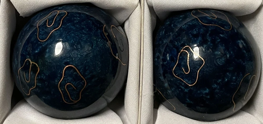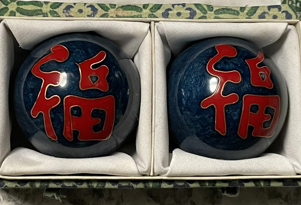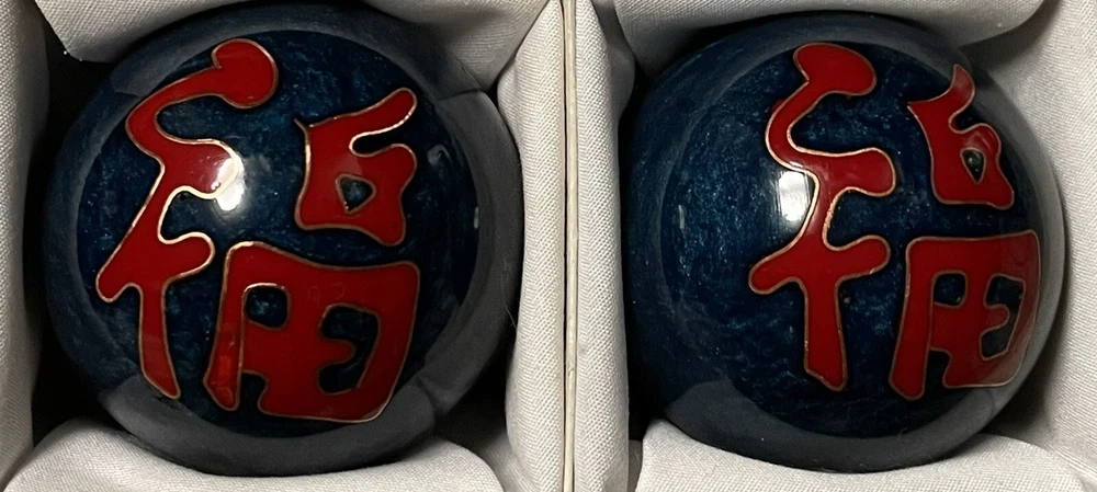 Vintage Chinese Stress Relief Meditation Ringing Iron Chime Balls 1.75", In Case