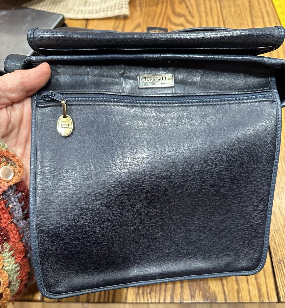 Christian Dior Two Tone N avy VTG Shoulder Crossbody Bag Leather Beautiful, high quality leather bag..two tones, and two styles of leather. Sides are Smooth, front, back, and bottom are pebbled. Bag measures 10.2" x 10.2" x 3.5" Adjustable strap drop from 19" to 21" Please ask questions if you don't see what you are interested in. Condition is great, for the age of the bag..tiny bottom end of zipper has come loose. I cannot locate a heat stamp code, but that doesn't mean the bag cannot be authenticated. It carries a tag from Vestaire Collective, that will be included. Items will always be mailed within one business day of purchase, and by using the most reliable and cost efficient method, usually Priority. If there is a huge difference in price, you will receive a shipping credit. I want to foster great lines of communication with my buyers. Please check out all photos, and feel free to ask questions before purchase. Thanks for looking, and check out my other fab handbags for sale.