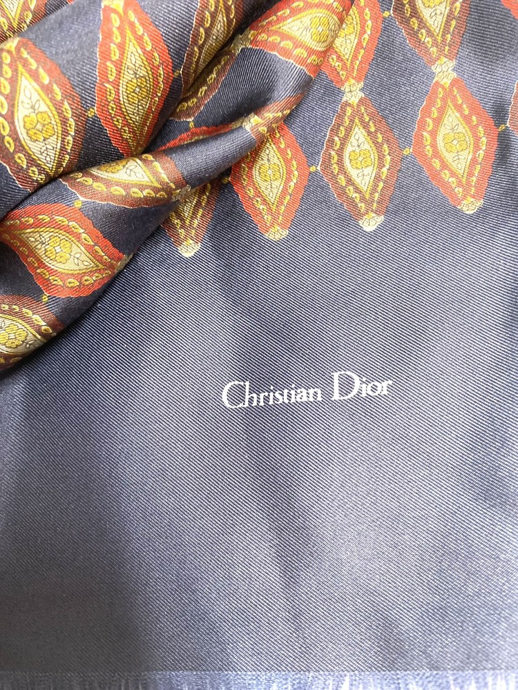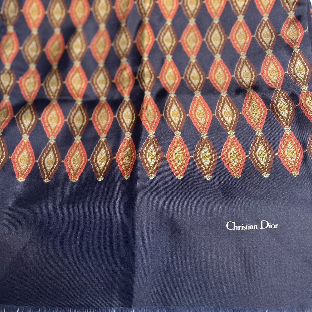 Pattern: Geometric Type: Scarf Style: Rectangle Scarf Features: Neck Warmer Country/Region of Manufacture: Italy Department: Women Season: Spring, Fall, Winter Brand: Dior Vintage: Yes Color: Blue Material: Silk