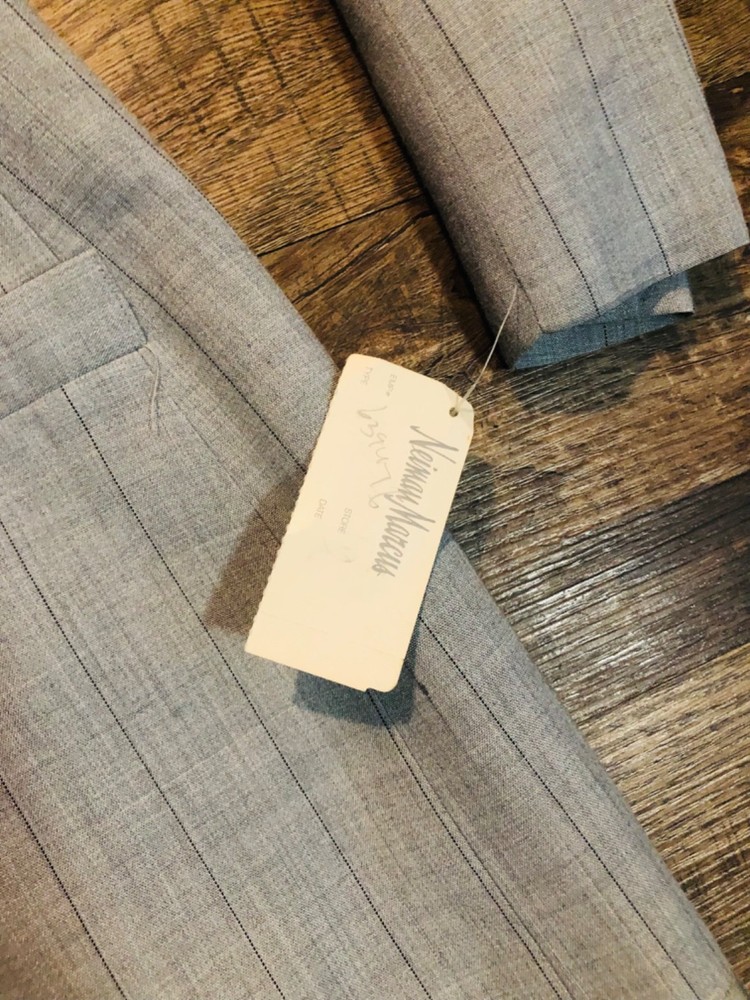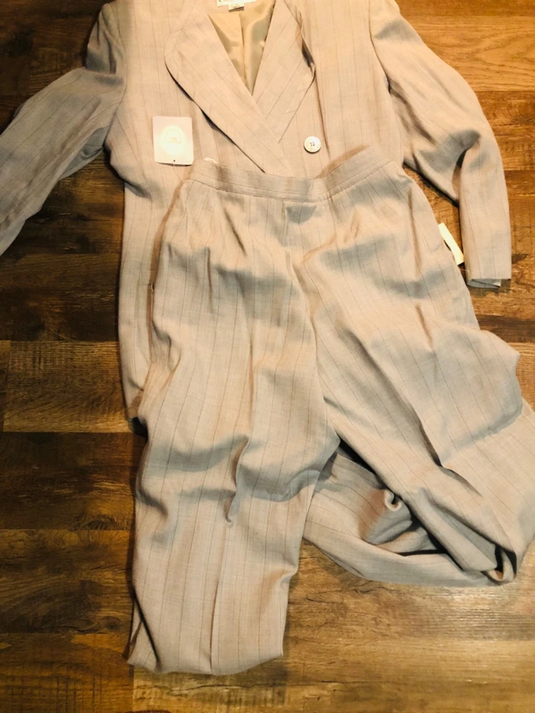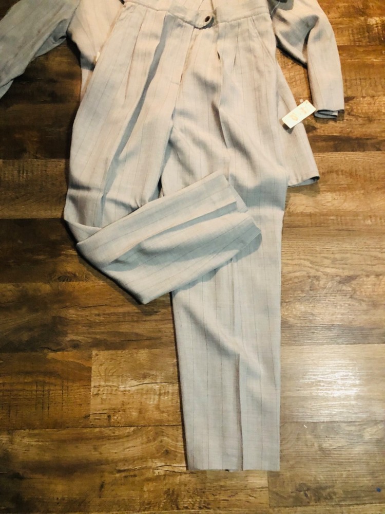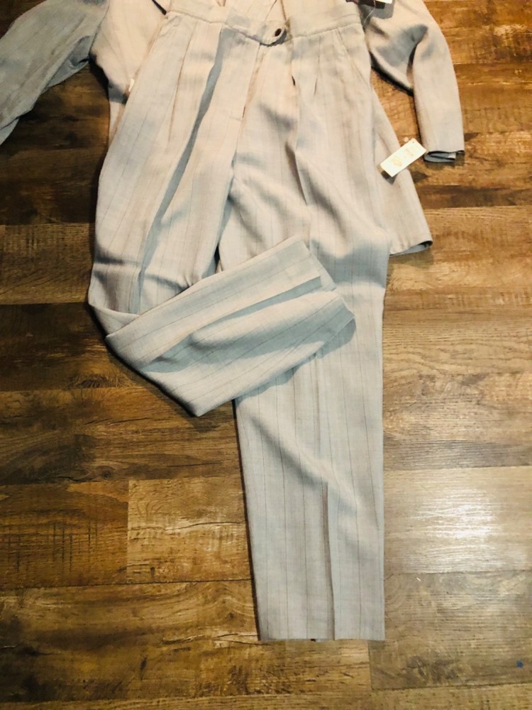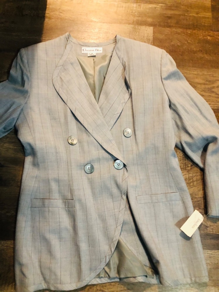 The Vintage Christian Doir pant suit is a classic two-piece ensemble perfect for women looking for a sophisticated and timeless style. Made from 100% cotton in a stylish gray color, this suit features a regular fit in size 14. The Christian Doir brand is known for its quality and attention to detail, making this pant suit a versatile and elegant addition to any wardrobe. Perfect for both formal occasions and professional settings, this vintage-inspired outfit is sure to make a statement with its timeless design and timeless appeal.