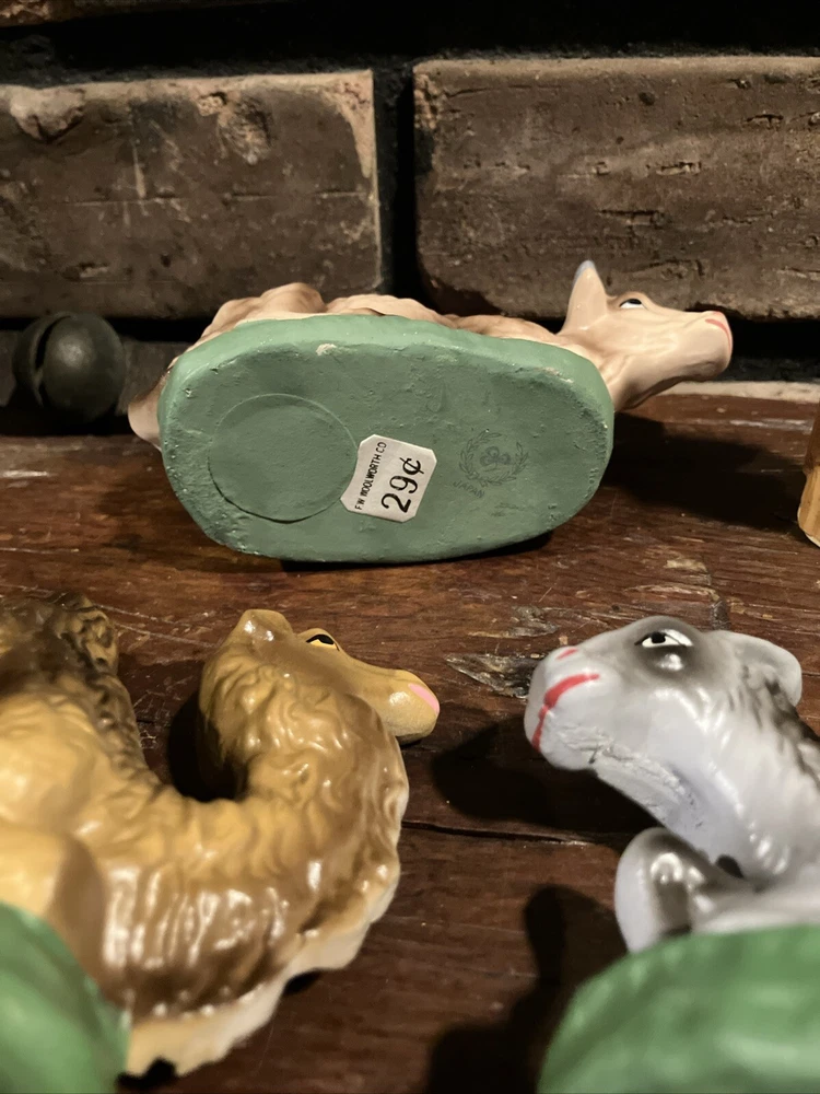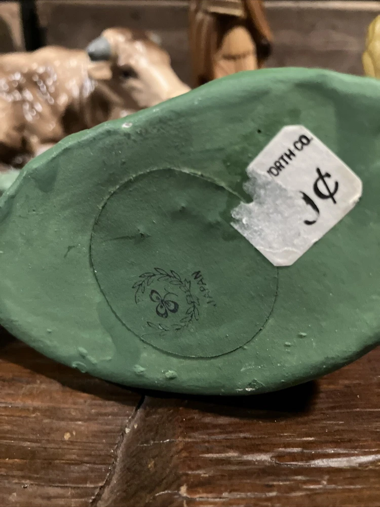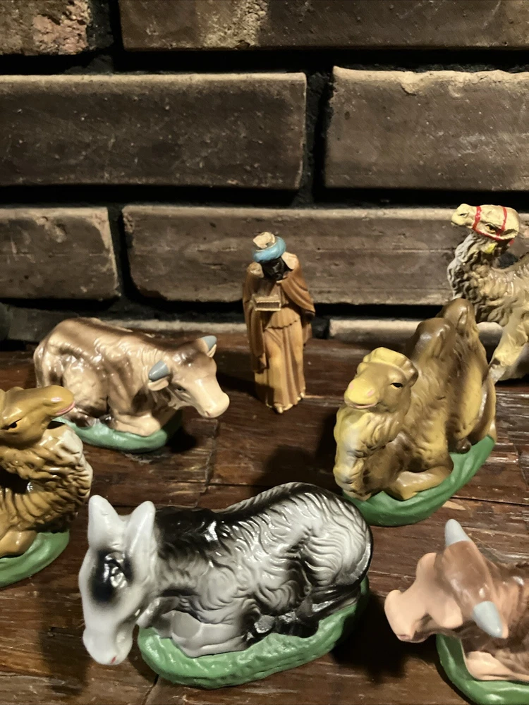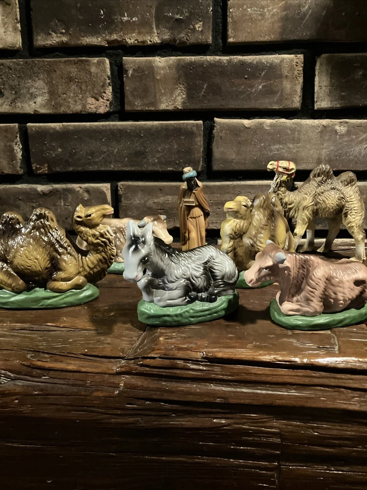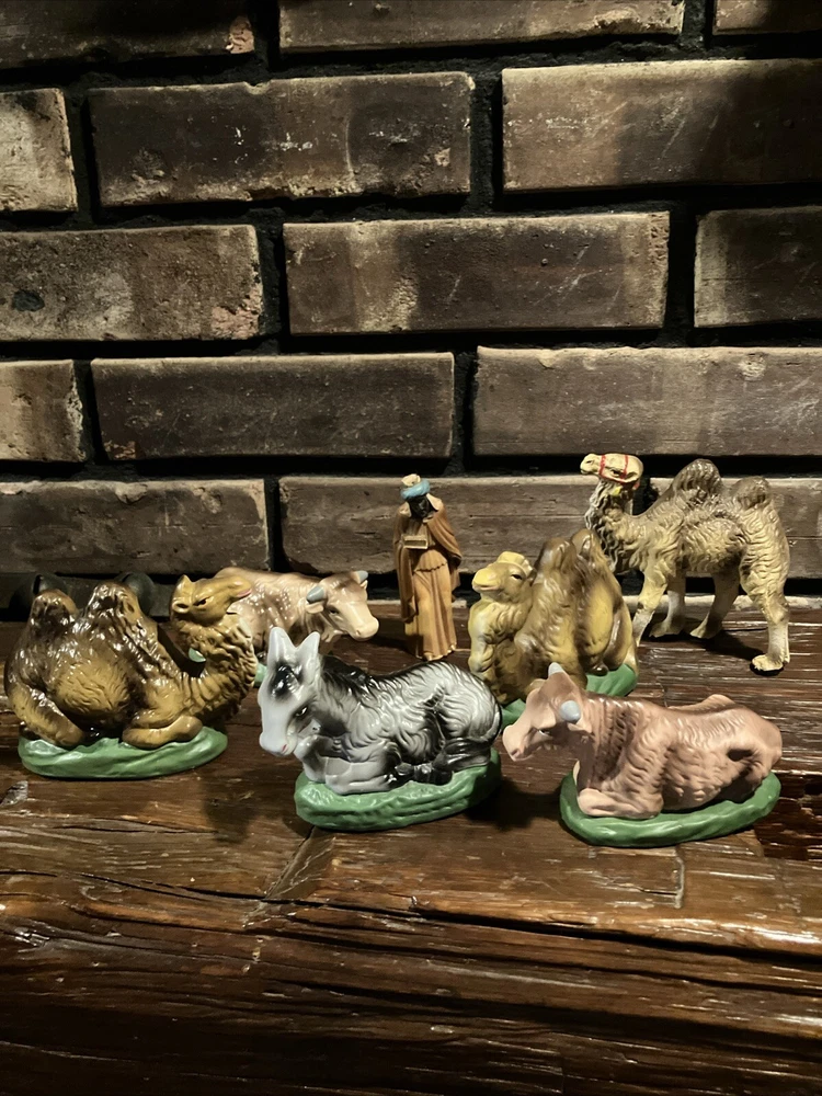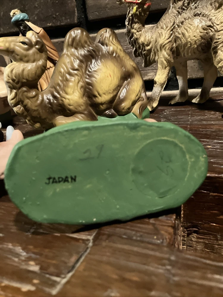 Shape:AnimalOccasion:ChristmasSubject:AnimalSet Includes:Cow, camelType:Nativity FigureNumber of Items:3Features:Vintage, Hand Painted, Green BaseUPC:Does Not ApplyCollection:Nativitygtin13:Does Not ApplyBrand:UnbrandedMaterial:ChalkwareTheme:NativityCountry/Region of Manufacture:JapanTime Period Manufactured:1950-1959