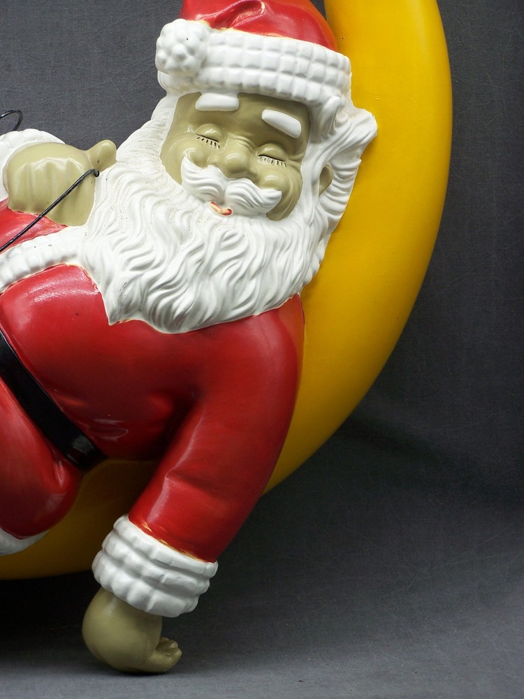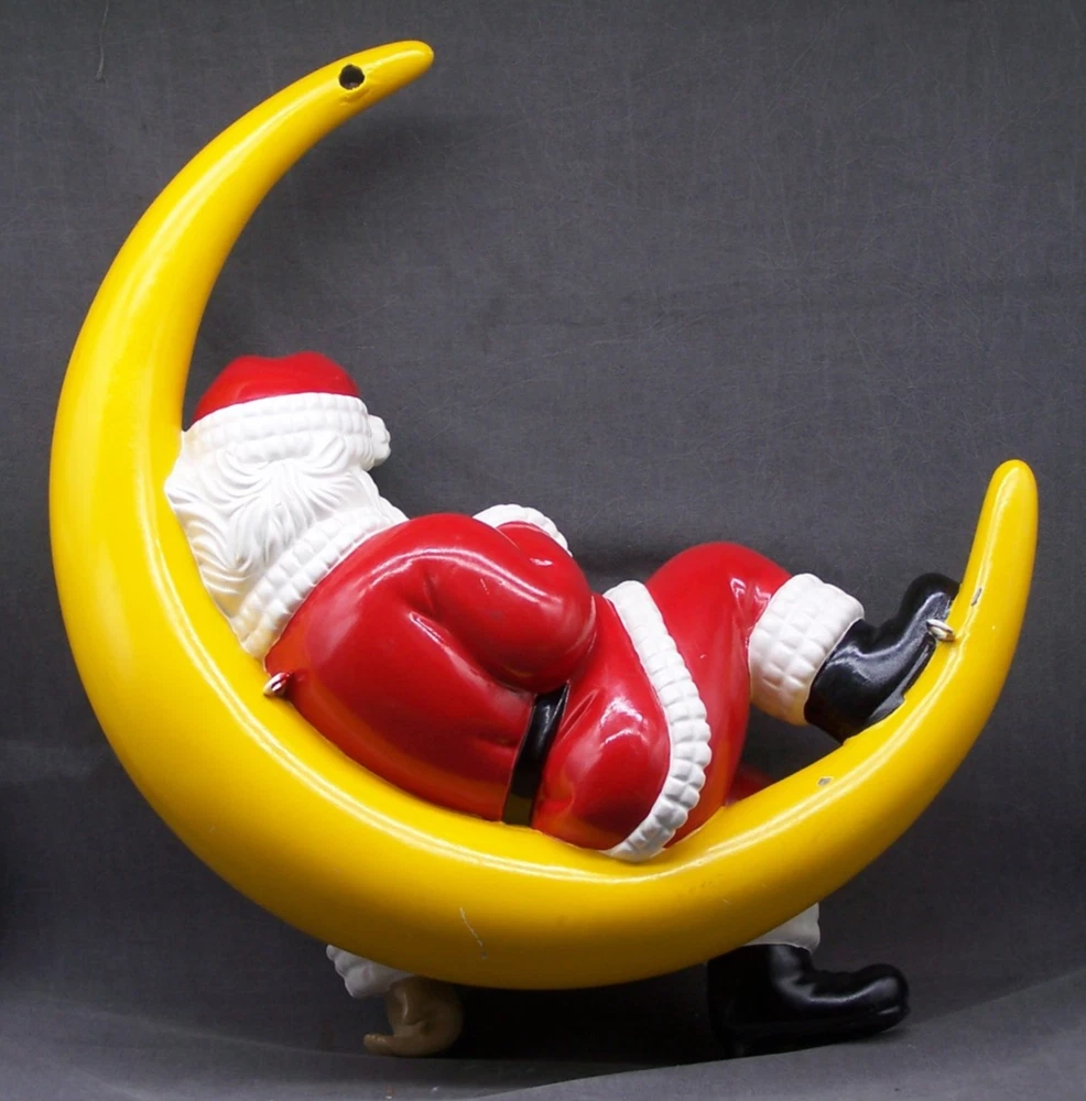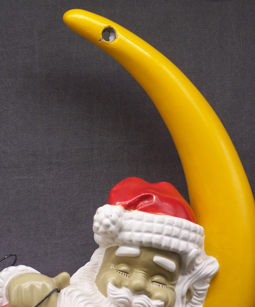 It is about 22" wide and 23" tall and 8" deep . It has 2 eye hooks and a 1/2" hole in thee tip of the moon It is in very good condition showing some wear and nicks in the finish as seen in the photos. Please check our other items, we will combine items to save you shipping cost Please ask questions before purchasing. Check back often we are always adding new items Thanks for taking the time to look at our items!