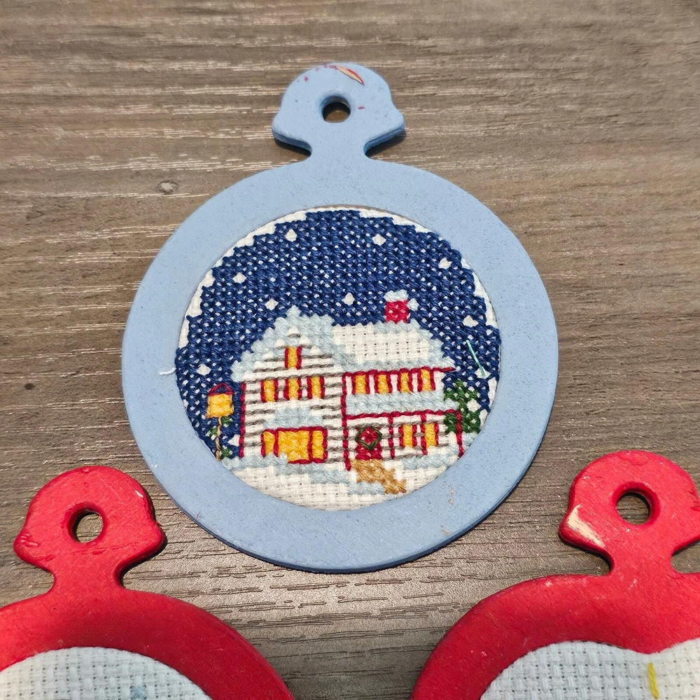 Vintage Christmas Cross Stitch Ornaments 80s Hand Made Santa Candle Snow Toys Drummer Toys -Great condition -Set of 6 ornaments -Vintage Christmas decor with wood frames -Hand Made Cross stitch ornaments -Red, blue, white -Collectible wood ornaments, rustic, country cottage, Measurements in photos. Same day / next day shipping Offers accepted Like for price drops and deals Bundle 2 items or more and save! Thank you! 4oz SH