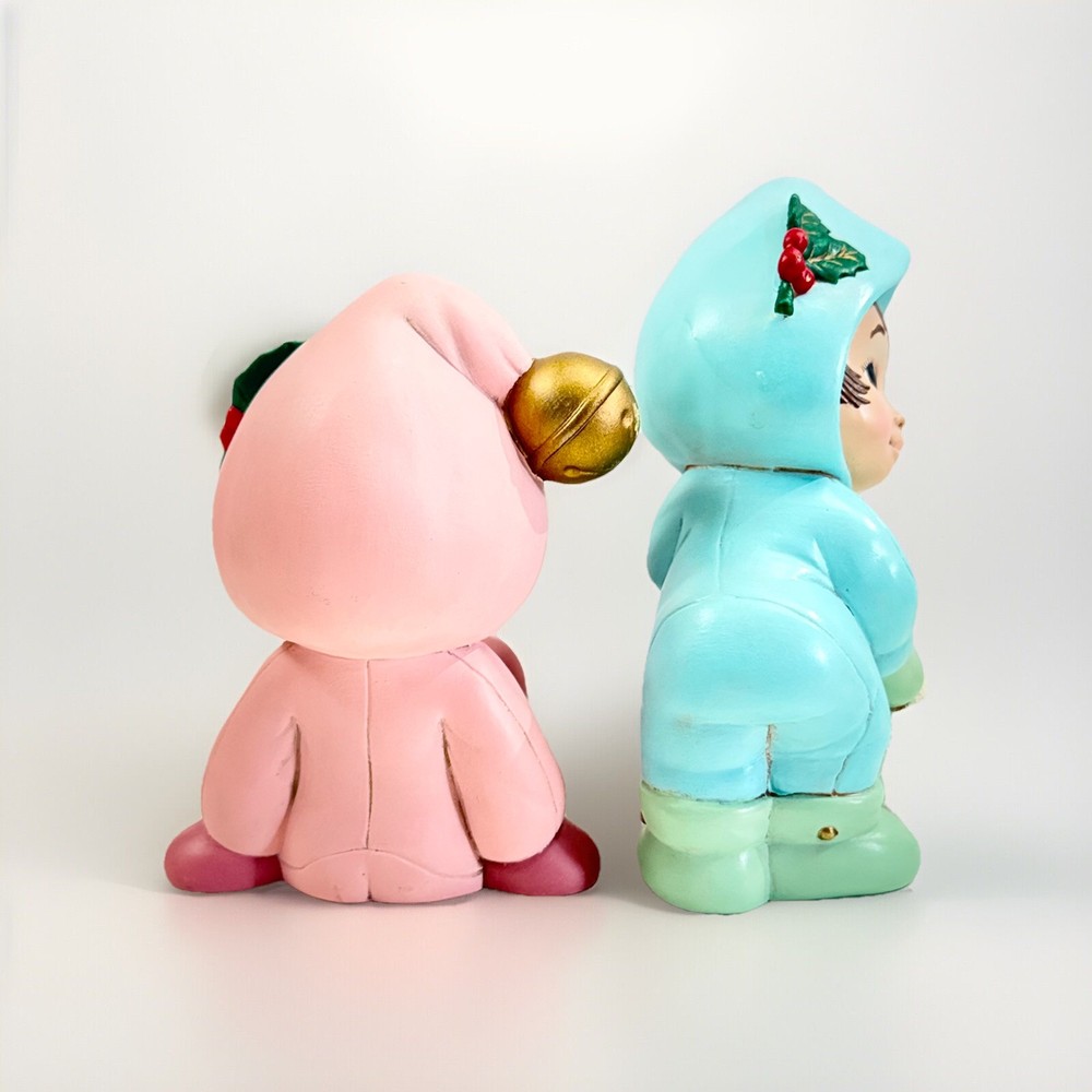 Vintage Figurines Snowbaby Bisque Holiday Decoration Set Of 2 Mid Century ❤️Measurement: Height: 7 in.(Blue) 5.5 in. (Pink) Weight: 1.13 lbs. ❤️Beautiful Excellent condition. Free from chips, cracks or scratch. Please review all attached photos for more details and feel free to reach out for any questions. ❤️Free shipping with bundle of care and ship right away🚚🚚 ❤️Thank you🙏