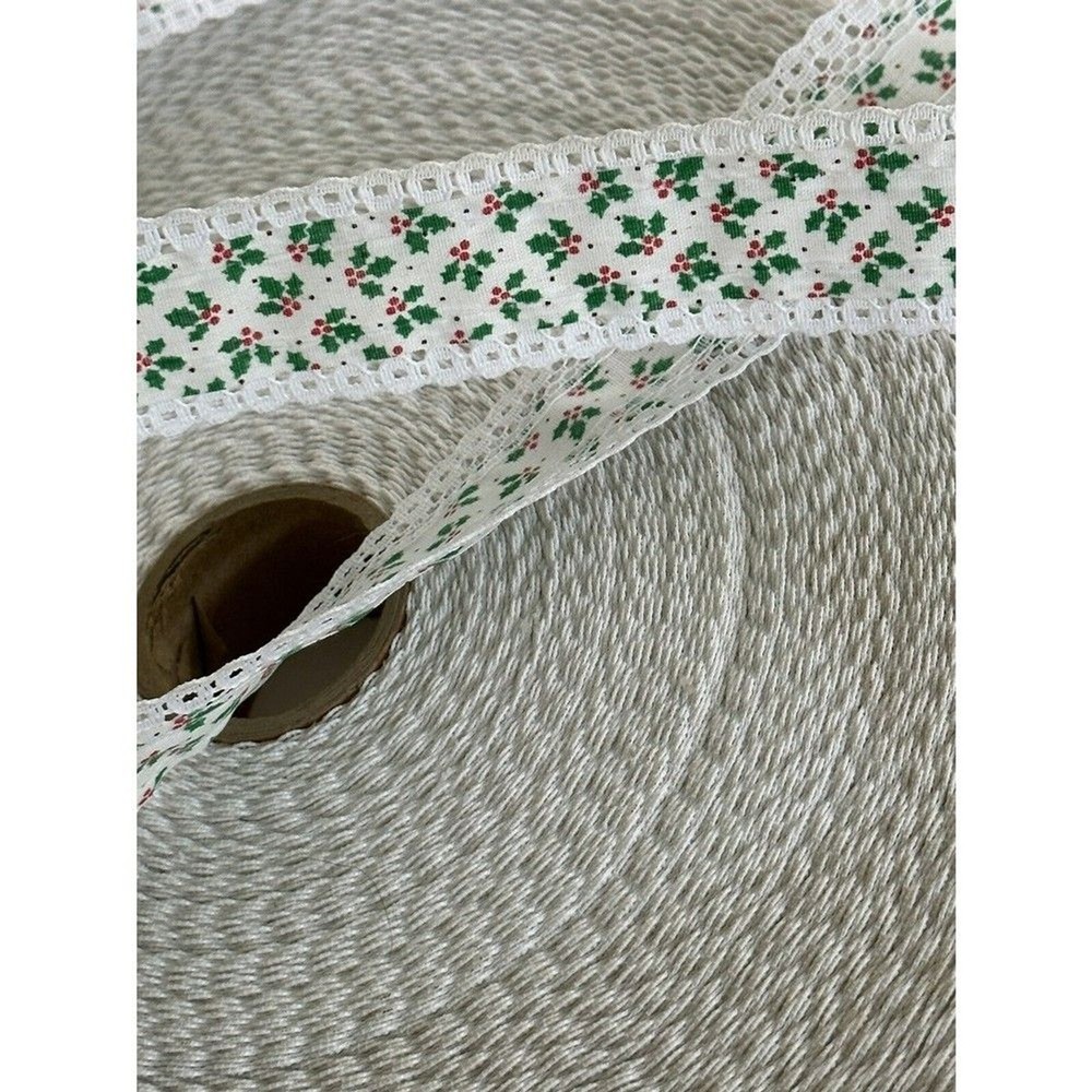 Vintage Christmas Holly & Ivy Lace Edge Trim Xmas Lace Trim 10yds Measurements: 10 yards x 1-1/4" width - Multiple Yards available - Message me if you would like more or less yards. Material: Cotton blend My home is pet free and smoke free; however, some items were acquire and have unknown history. To view other items I have for sale, click on my name. I am willing to bundle to save on shipping. #trim #lace #xmastrim #winksstoreroom #vintagetrim