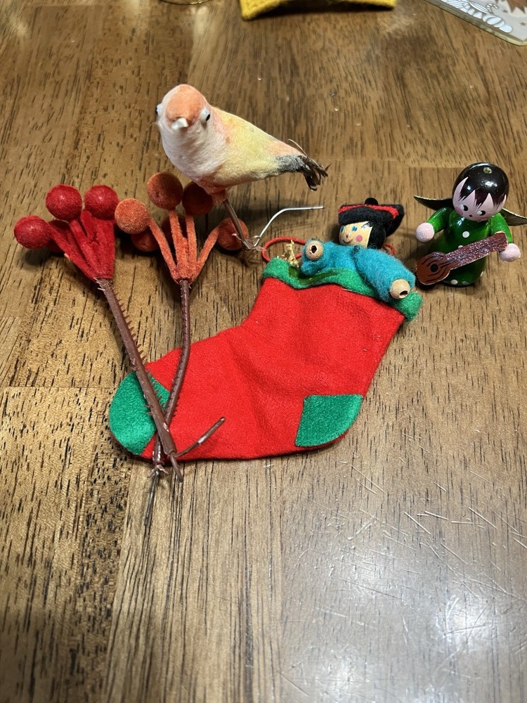 Vintage Christmas Ornaments Items For Crafting Packages Wreaths Lot of over 45 some items have missing pieces, discolored or even broken. This is best for crafting, wreath making where you can make adjustments or hide flaws but still have the vintage charm.