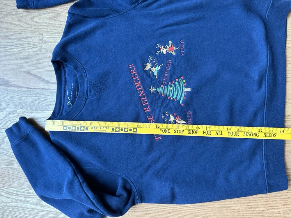 Vintage Christmas Reindeer Sweatshirt in a Women’s Size Medium This pullover sweatshirt is a perfect example of Y2K GrannyCore. It is in excellent condition with very high-quality embroidery of each reindeer and its name. Has double sided graphics so you can see them coming and going. The sweatshirt is very soft and has been washed so it will arrive at your home fresh and clean. Ships from the Midwest.
