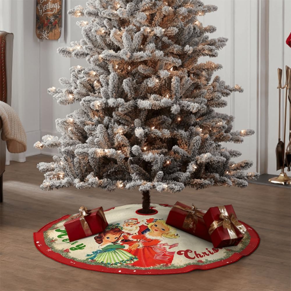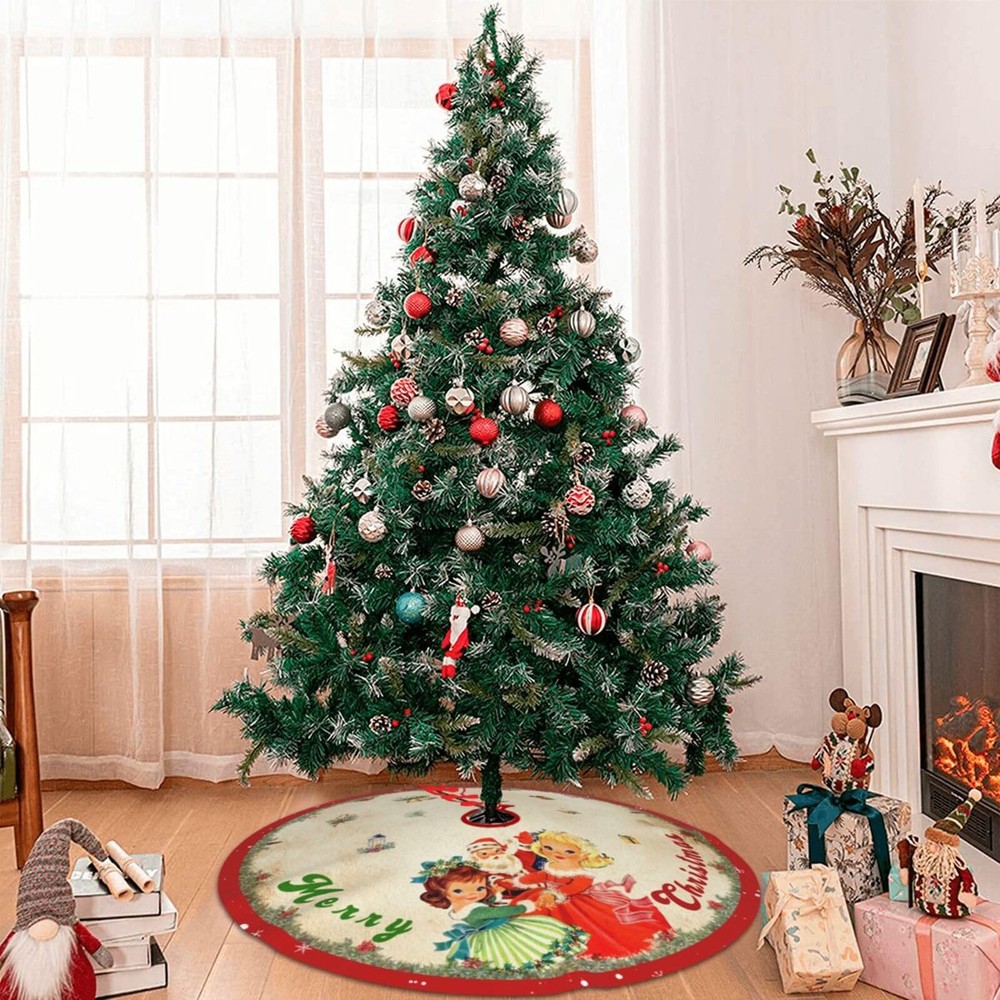 Vintage Christmas Tree Skirt Christmas Decorations - Red Vintage Style Xmas Tree π VINTAGE RED CHRISTMAS TREE SKIRT: You will receive 48 inches vintage red Christmas tree skirt, this tree skirt is the ideal size for all Christmas trees, which is enough to hide the ugly tree frame. You can put your favorite decorations and gift on the tree skirt, add more strong Christmas atmosphere. π UNIQUE DESIGN: The designs of this Christmas tree skirt are carefully selected, Use unique vintage santa claus, girls, snowflake and printed with "Merry Christmas", with Christmas red and vintage theme color can add a romantic and warm festive atmosphere to your family or party. π HIGH QUALITY MATERIAL: Our Christmas tree skirt is made of high quality brushed fabric, it can keep the color lasting and not fading, The short fluff covering the surface is smooth and soft to the touch. It is a favorite place for pets and children at Christmas in winter. π APPLICABLE SCENE: The Christmas tree mat with 3 red cords to tie your tie, which is convenient and tidy.Perfect for decorate your Xmas tree at home, offices, Christmas parties, schools, shops, supermarkets, etc.After Christmas season, you could fold it up and reuse it next holiday. π PERFECT SERVICE: In celebrating the holidays, customer satisfaction is our first purpose, If you have any questions about this Christmas tree skirt, please contact us, we will definitely give you a satisfactory answer within 12 hours. Sincerely wish you Merry Christmas. Christmas Tree Skirt Red =Christmas Decorations - Xmas Tree Skirt Mat with Vintage Pattern for Indoor Outdoor Merry Christmas Holiday Party Decor 48 Inches Shipping We offer FREE shipping on all orders! We ship within Three business days of payment, usually sooner. We use a selection of shipping services such as UPS, FedEx, USPS etc. We only ship to the lower 48 states, no APO/FPO addresses or PO Boxes allowed. Local pickups and combined shipping options are not provided at this time. Return You can return a product for up to 30 days from the date you purchased it. Any product you return must be in the same condition you received it and in the original packaging. Please keep the receipt. Payment We accept payment by any of the following methods: PayPal Please pay as soon as possible after winning an auction, as that will allow us to post your item to you sooner! Feedback Customer satisfaction is very important to us. If you have any problem with your order, please contact us and we will do our best to make you satisfied. Contact Us If you have any queries, please contact us via ebay. We usually respond within 24 hours on weekdays. Please visit our eBay store to check out other items for sale! Thank you for shopping at our store.