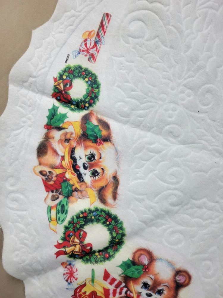 Vintage Rennoc Joyce Garofalo felt Christmas tree skirt. Baby animals with Christmas decor. Very good clean condition. It has been cut. Item will ship within one business day of completed sale. I DO NOT ship media mail. All items will be securely packaged and will ship USPS Ground Advantage, Priority mail, UPS or Fedex depending on weight and size. I do offer a 30-day money back guarantee on almost every item I sell. If there are issues with your item, please return it for a refund. Refund will be issued upon return of item. Some restrictions may apply. It is always appreciated if you contact me before starting a return so that I can try and assist without the hassle of a return.