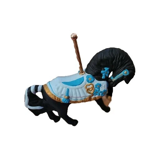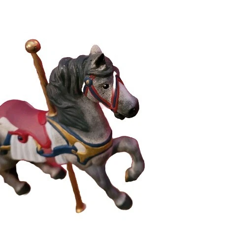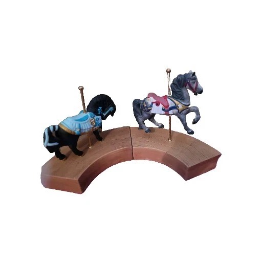 This vintage circus collectible features two beautiful horses from a carousel. The intricate details of the horses' manes and saddles are sure to impress any circus enthusiast. This item falls under the categories of collectibles, historical memorabilia, and fairs, parks, and architecture. It is a unique addition to any collection and is perfect for display in a home or office.