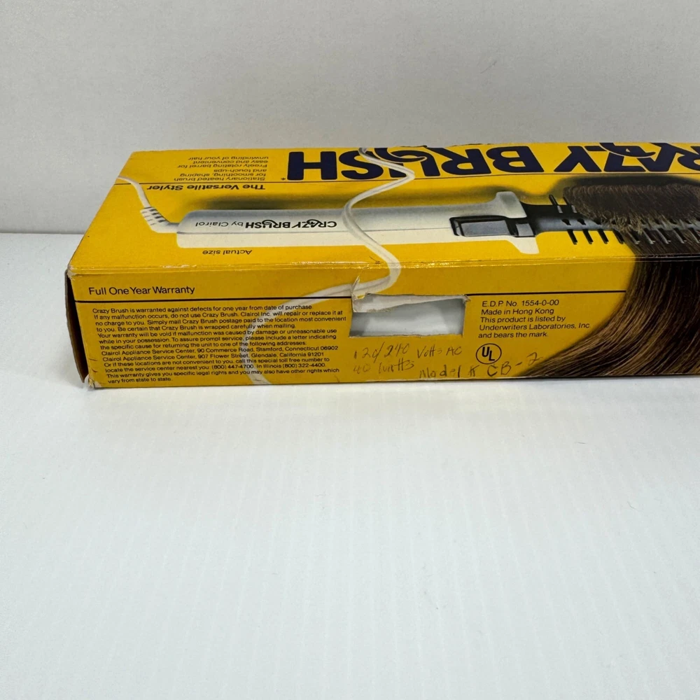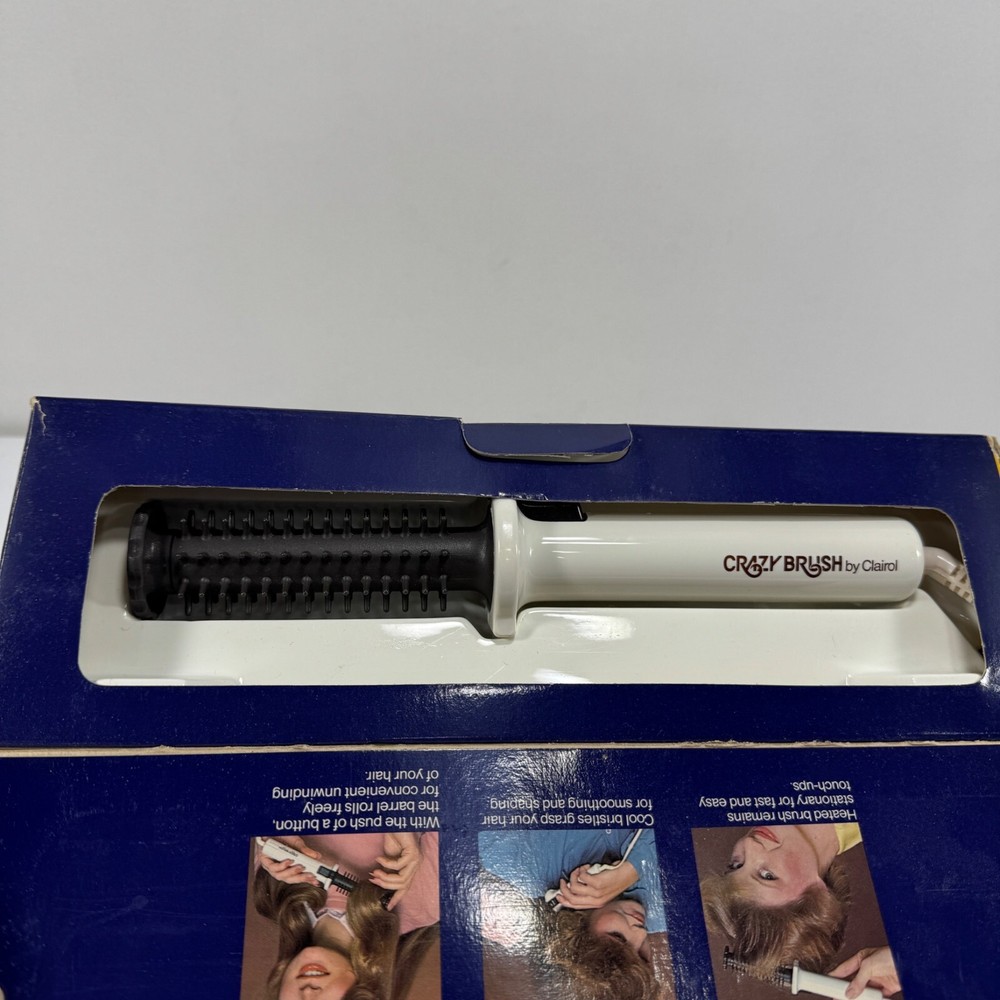 Up for your consideration is the Clairol Crazy Brush. • Stationary heated brush • Freely rotating barrel • 120/240 Voltage AC I'm not sure if it has ever been used but I'm listed it as pre-owned. It's in good condition and has been tested. Instruction booklet is inside. The box is worn with tears.