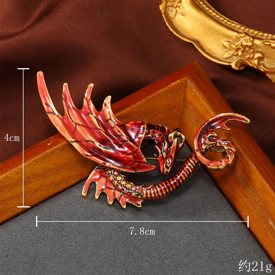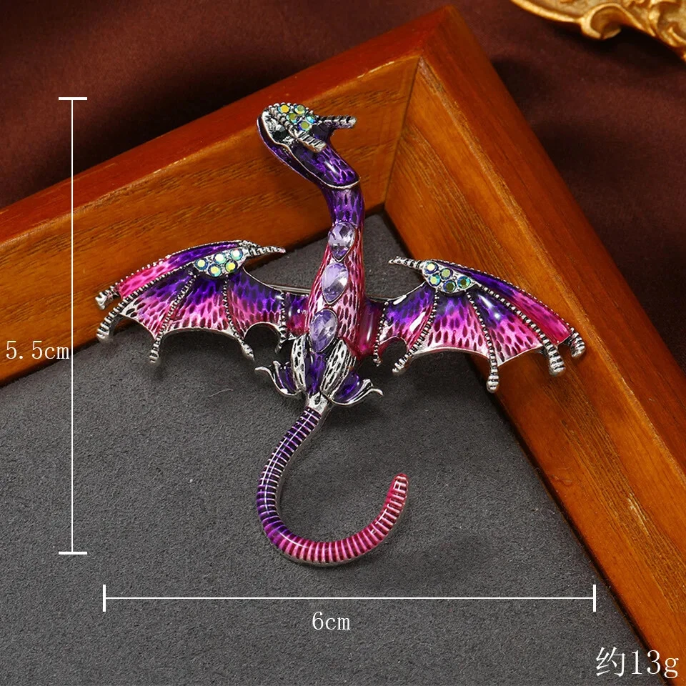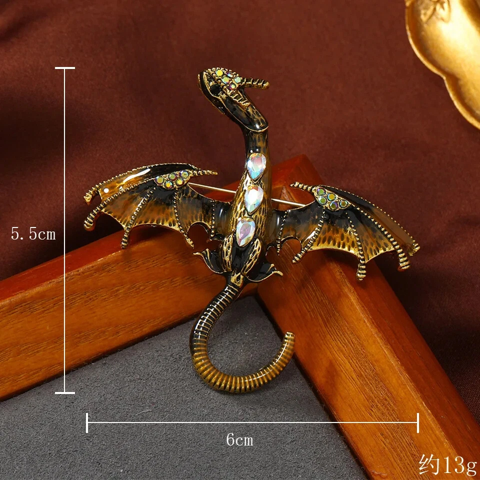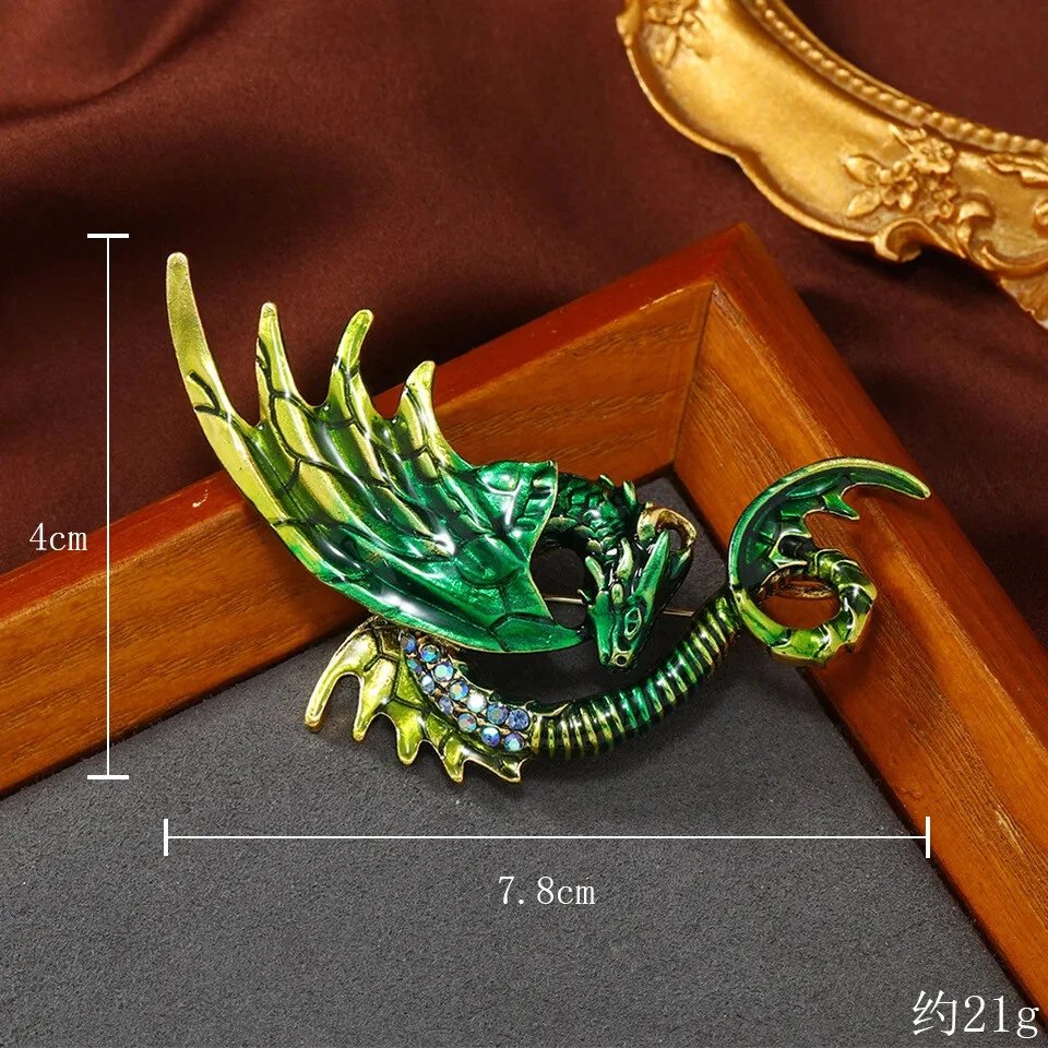 Vintage Classic Enamel Dragon Crystal Badges Pins Women Men Clasual Accessories
