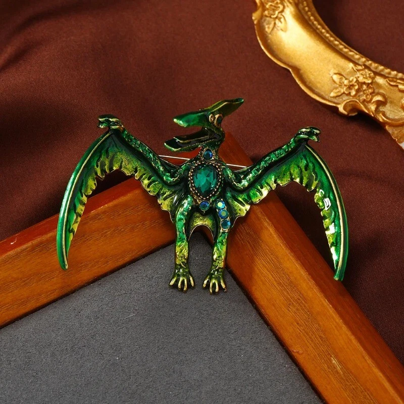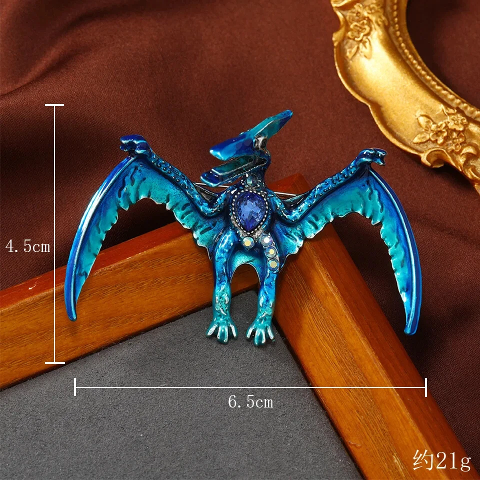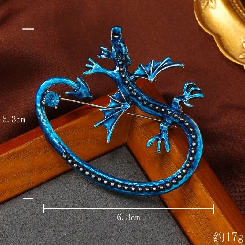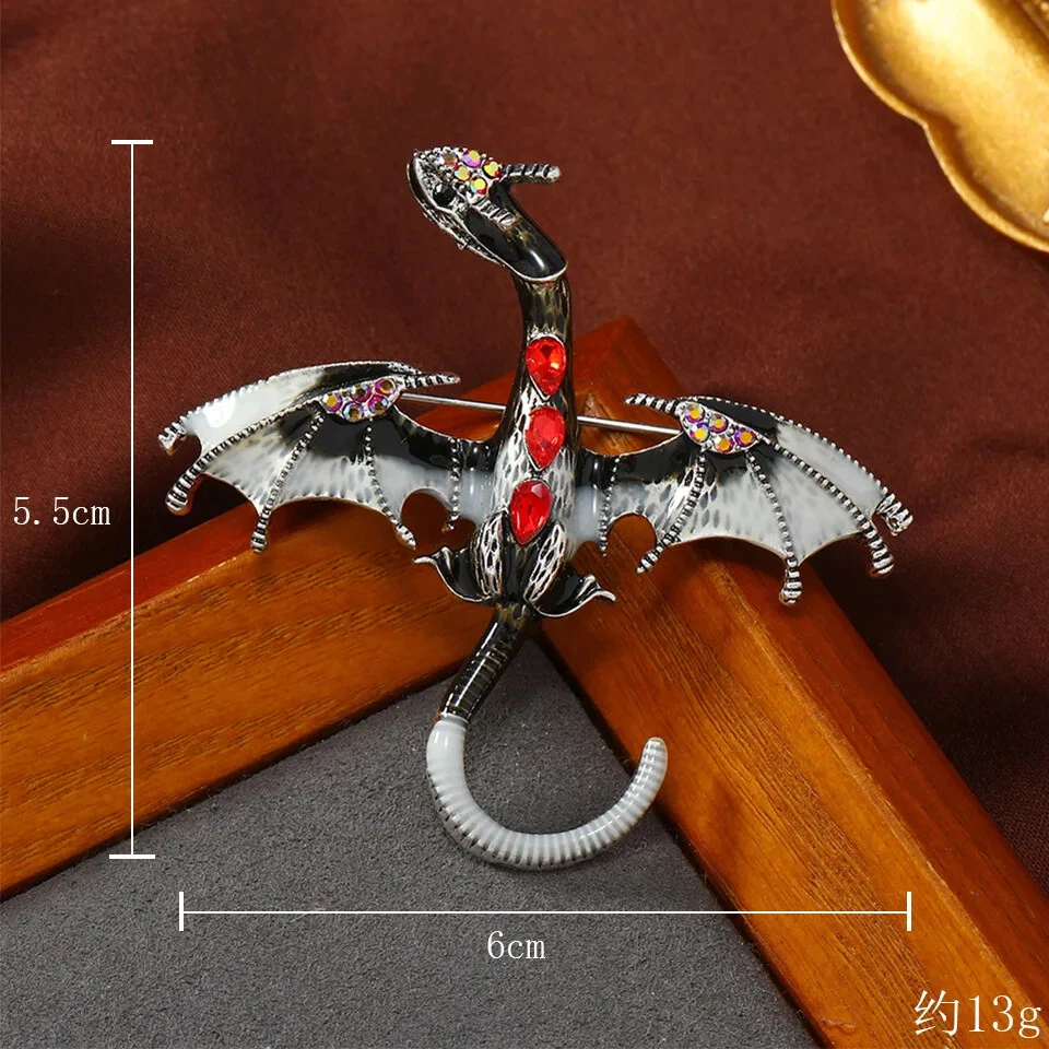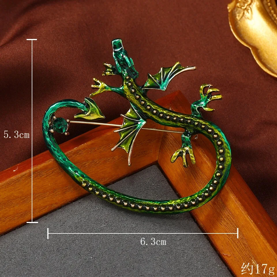 Vintage Classic Enamel Dragon Crystal Badges Pins Women Men Clasual Accessories