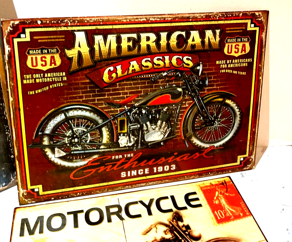Add a touch of vintage charm to your home or office with this Classic Motorcycles Metal Tin Sign. The sign features a stylish design that showcases the beauty of classic motorcycles. Made from high-quality tin, this sign is durable and long-lasting. Ideal for motorcycle enthusiasts, this sign is perfect for adding a touch of personality to any space. The sign is easy to hang and will instantly transform any room. Whether you're a collector or simply love the vintage look, this Classic Motorcycles Metal Tin Sign is a must-have accessory.