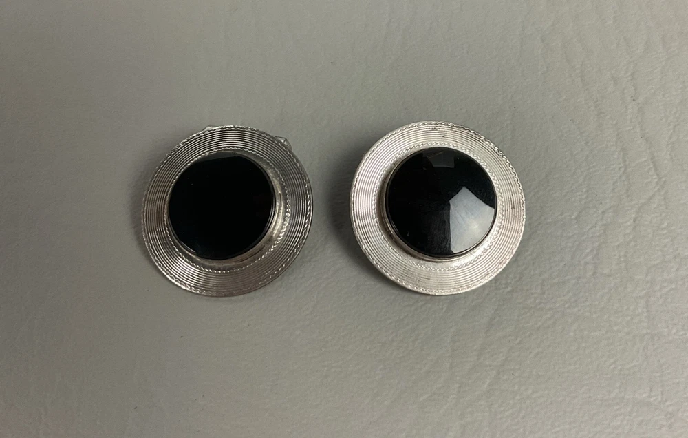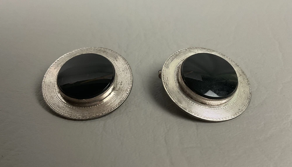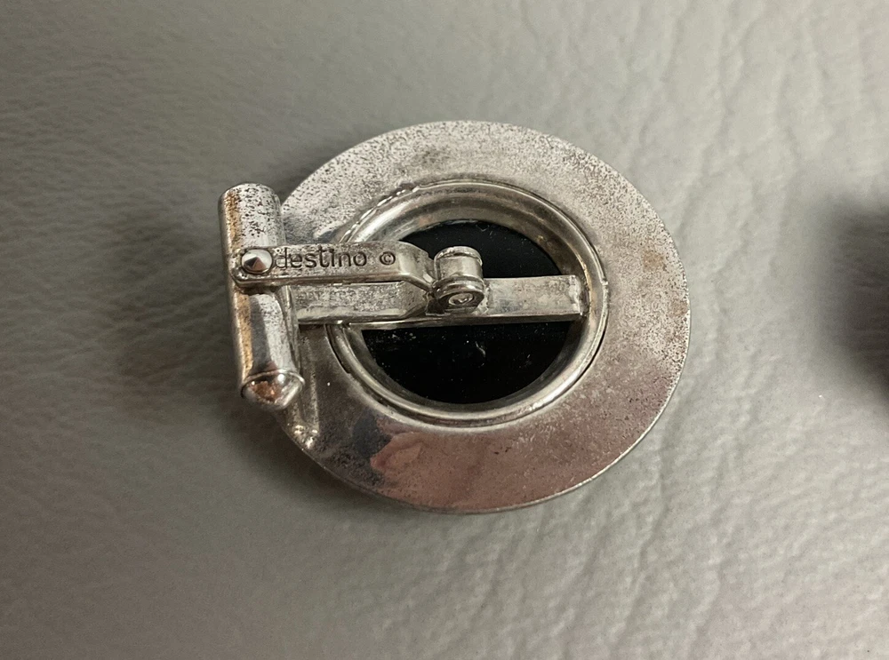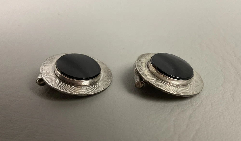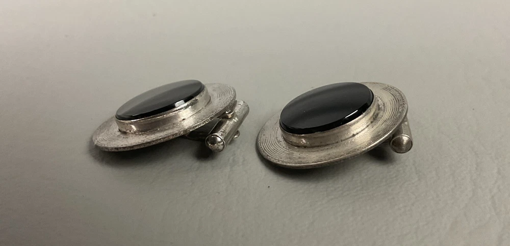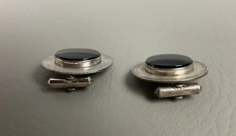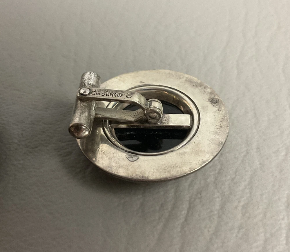 Vintage: Yes Metal: Silver Color: Silver and black Department: Men Main Stone: Onyx Brand: Destino Type: Cufflinks Shape: Round