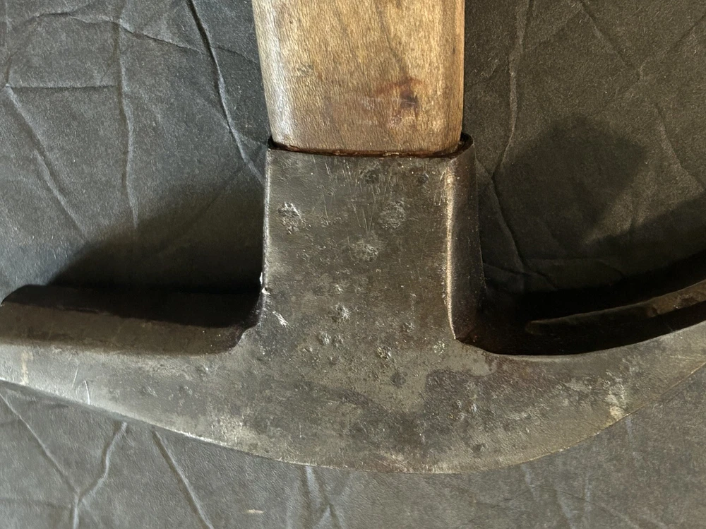 This vintage claw hammer with 13" wood handle is unbranded. The hammer head measures 5" across.