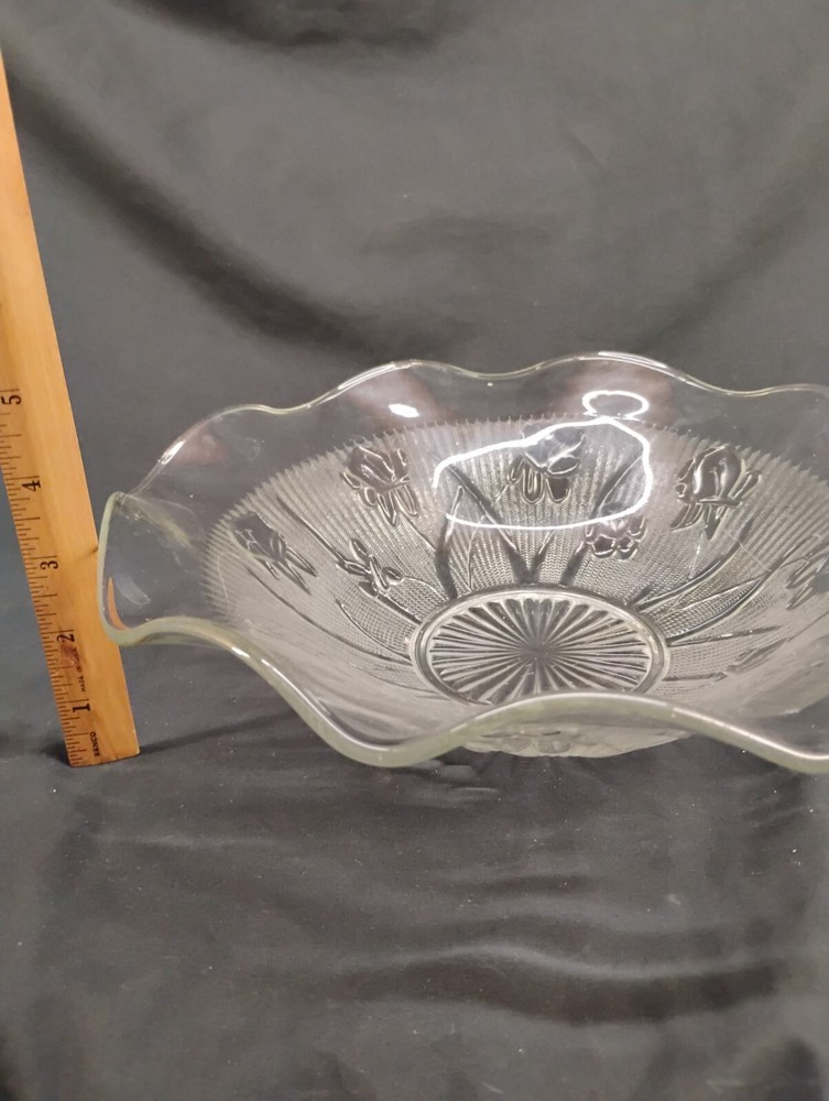 Vintage Clear Depression Glass Frosted Flowers Serving Bowl is an unmarked piece of glassware with a vintage design featuring frosted flower patterns. The serving bowl is made of clear glass, perfect for serving food or displaying as a decorative item in your home. Thank you for visiting my listing today and thank you for your interest in this item! My goal is to have a pleasant transaction resulting in a satisfied customer. I hope any transaction between us leaves you with a feeling of confidence knowing you can trust me and the items I offer here. *Most if not all my listings are set to accept offers. Feel free to send an offer and I will be happy to consider it!! *Please contact me with any questions or concerns and I will be happy to help. *Always examine the photos carefully, and if in doubt, email me with any questions you may have. *Please note that condition statements are offered as a guide only. They will always be somewhat subjective and reflect our opinion, which may not necessarily agree with someone else's opinion. PLEASE READ: I aim to please and I want my buyers to have a positive transaction with me. If you have questions, concerns, or special requests related to any of my items I hope you will contact me so we can work them out to your satisfaction. I sell my items to give you a great item at a decent price while making a little profit at the same time. If you feel the item you are interested in is too pricey do not hesitate to send me a fair offer and I will consider it. My goal is to satisfy your needs and mine so both parties can benefit. SHIPPING: If you prefer a different shipping method or company please contact me and I will do all I can to make that happen. If you have concerns or requests about the packaging of your item contact me and I will do all I can to accommodate them. Shipping costs are based on location in each state or country, the costs always differ. After I have received your payment I will ship your item out within 3 business days or less excluding weekends and holidays. BEFORE PURCHASING & BIDDING: **Please see all the pictures. I do not have great photography skills but I try to get the most accurate photos I can. If you are unsure about something you see in a photo contact me so I can do what I am able to answer your concern about the item. **I cannot stress enough that if you have any questions or concerns please contact me before purchasing and bidding. Communication can solve so much. **As a customer myself, I understand the meaning of customer satisfaction and my goal is to have nothing but satisfied customers. If you are not unsatisfied with your purchase I ask that you please contact me so I can take care of your issue. My goal is for you to be 100% satisfied. INTERNATIONAL BUYERS WELCOMED - PLEASE NOTE: I welcome International buyers! Please be aware that any custom/duties/taxes that the parcel might incur once it is out of the USA are the responsibility of the buyer. Please check with your country's customs office to determine what these additional costs will be prior to bidding or buying. Please refer to the eBay Site Map for more information if needed.