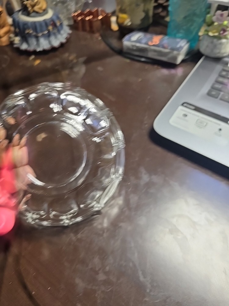 This vintage Clear Glass Bowl by Whitehall Fostoria is a small round dish with a Cubist pattern, characteristic of Mid-Century Modern style. Measuring 5.25 inches in width and 3 inches in height, it is ideal for serving nuts, sauces, candy, condiments, or as a decorative piece for all occasions. Made in the United States during the mid 20th century, this elegant bowl features pressed glass production and fused glass technique, adding a touch of sophistication to any table setting.