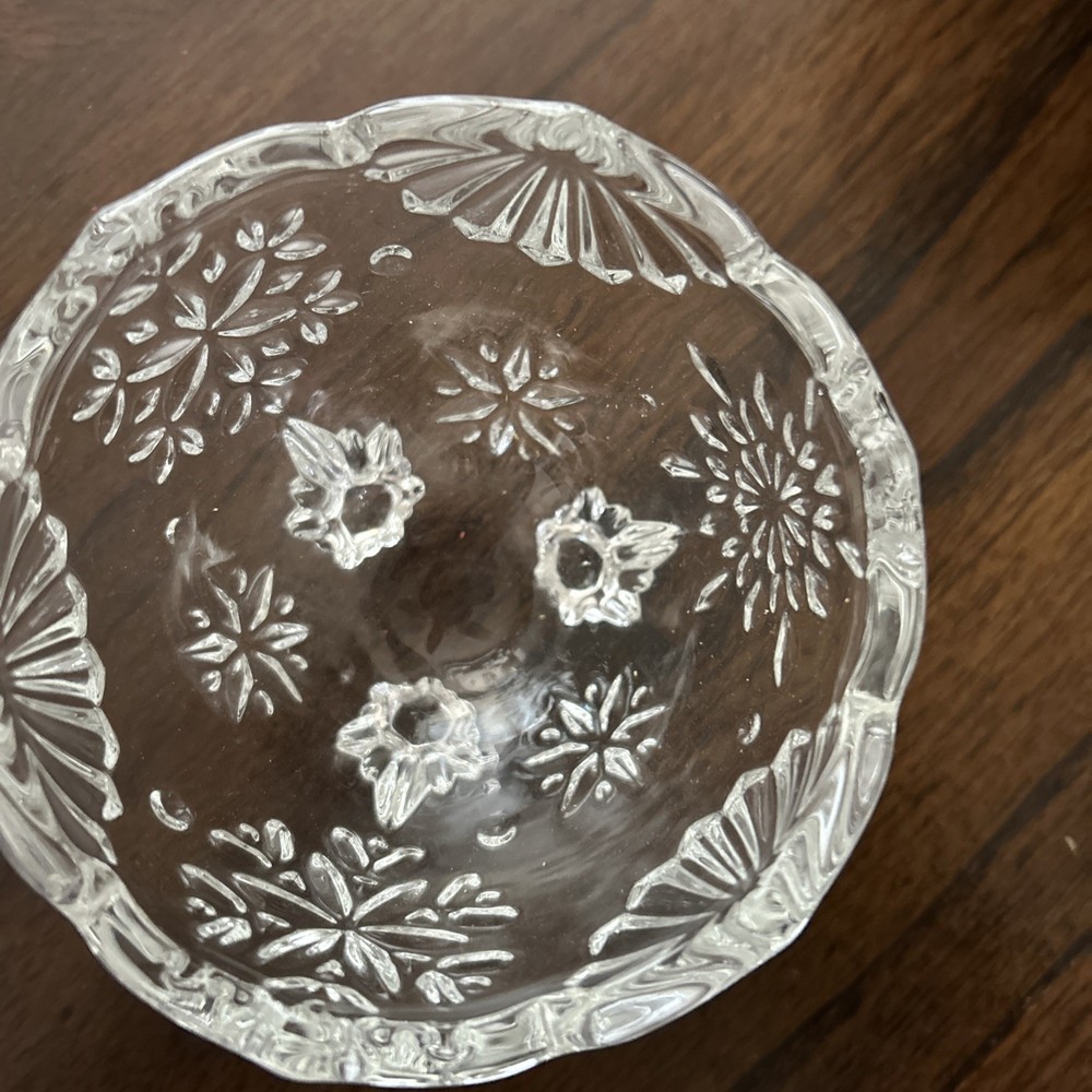 Elevate your display with this vintage clear glass footed candy dish, featuring a delightful grape and leaf pattern that exudes an air of elegance. The dish's contemporary style, with its glossy finish and simple yet sophisticated square shape, makes it a versatile addition to any decor, reflecting an American thematic flair. Crafted through the pressed glass technique and fused glass production style, this unmarked dish boasts a single compartment perfect for showcasing your favorite sweets or as a standalone decorative piece. Its floral pattern and clear coloration allow for a seamless fit into both casual and formal settings, adding a touch of vintage charm to your home.