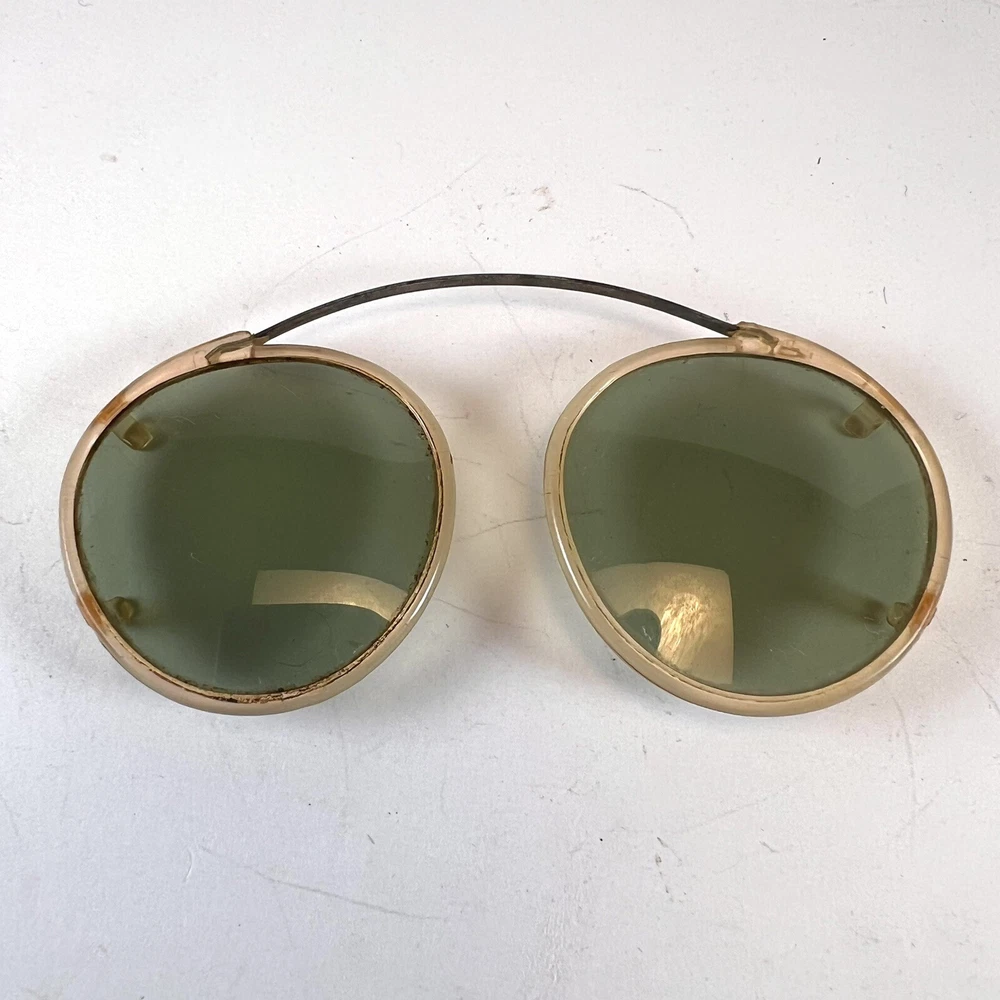 Antique Clip On Sunglasses Polarized Eyeglasses Wire Rim Gold Color Green Lenses