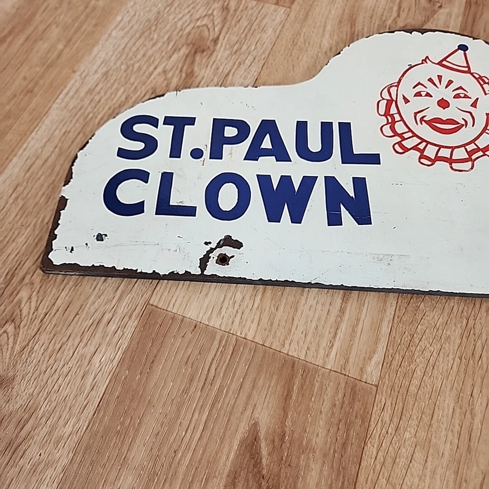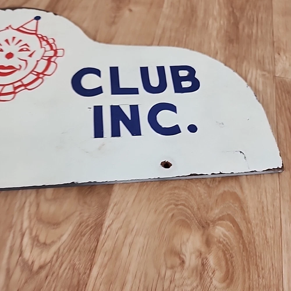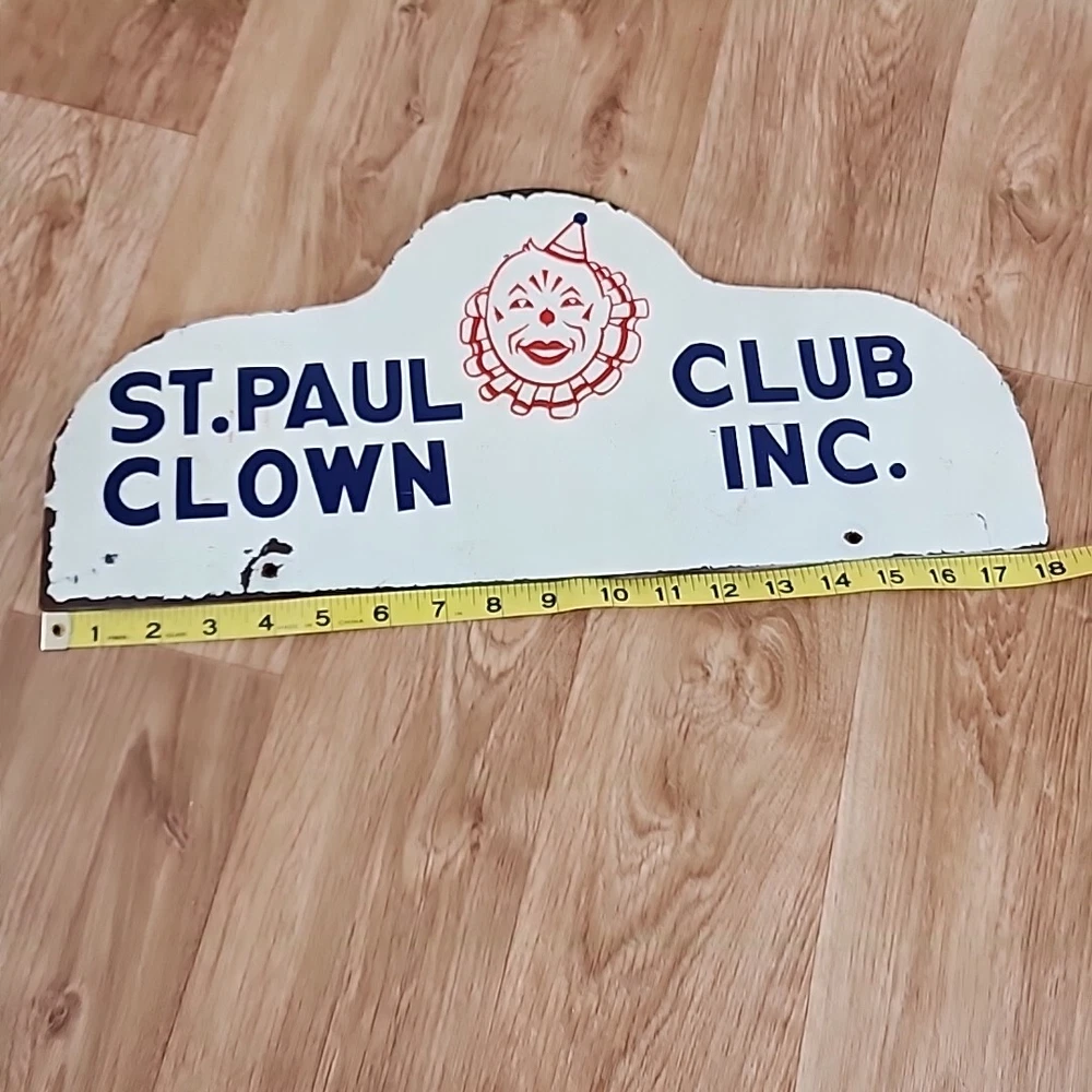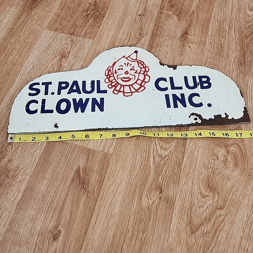 This vintage clown sign is a must-have for any collector of circus and carnival memorabilia. The double-sided name plate features the St. Paul Clown Club and is a great addition to any collection of vintage signs. Made in the United States, this sign is perfect for those who appreciate the history of clowning and the Clowns of America. The sign is ideal for display in a home, office, or man cave, and would make a great gift for anyone who loves circus and carnival history. The profession of clowning is represented on this sign, along with the theme of Circus & Carnival. This item is classified under Collectibles, Historical Memorabilia, Fairs, Parks & Architecture, and Other Circus & Carnival categories. Add this vintage clown sign to your collection today!