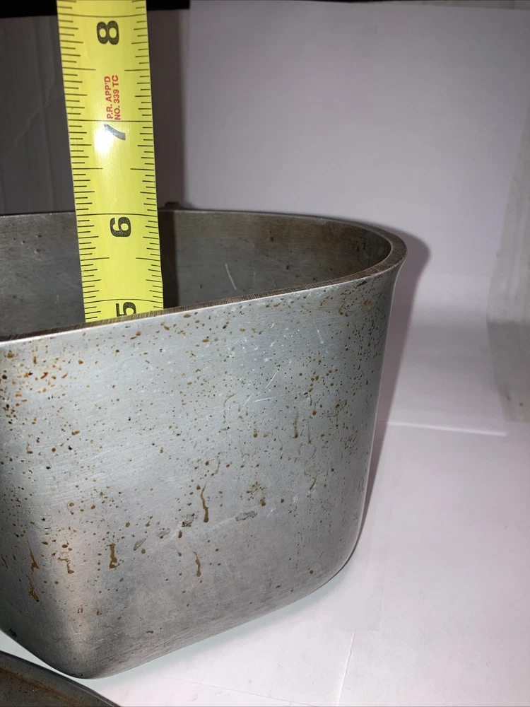 Add a vintage touch to your kitchen with this Club Cast aluminum stockpot. The heart and triangle shape make it unique and perfect for adding charm to your cooking. The pot is compatible with induction, electric, and gas stove type top and comes with a lid. It is a two-piece set that includes a stockpot and lid, and it is made of durable stainless steel. Condition is most definitely used, it’s clear that it shows signs of usage. Most definitely still in usable shape. Would be great for campfires or maybe just outside in the backyard at the fire pit. Please refer to the photos for the exact condition before you purchased. Thank you! This original, licensed reproduction from the 1970s was made in the United States and has a silver color. The pot measures 5.5 inches in depth and 8 inches in width, making it perfect for small to medium-sized meals. It features a surface coating of stainless steel and is suitable for use in induction, gas, electric, and steam ovens. Will ship within two business days