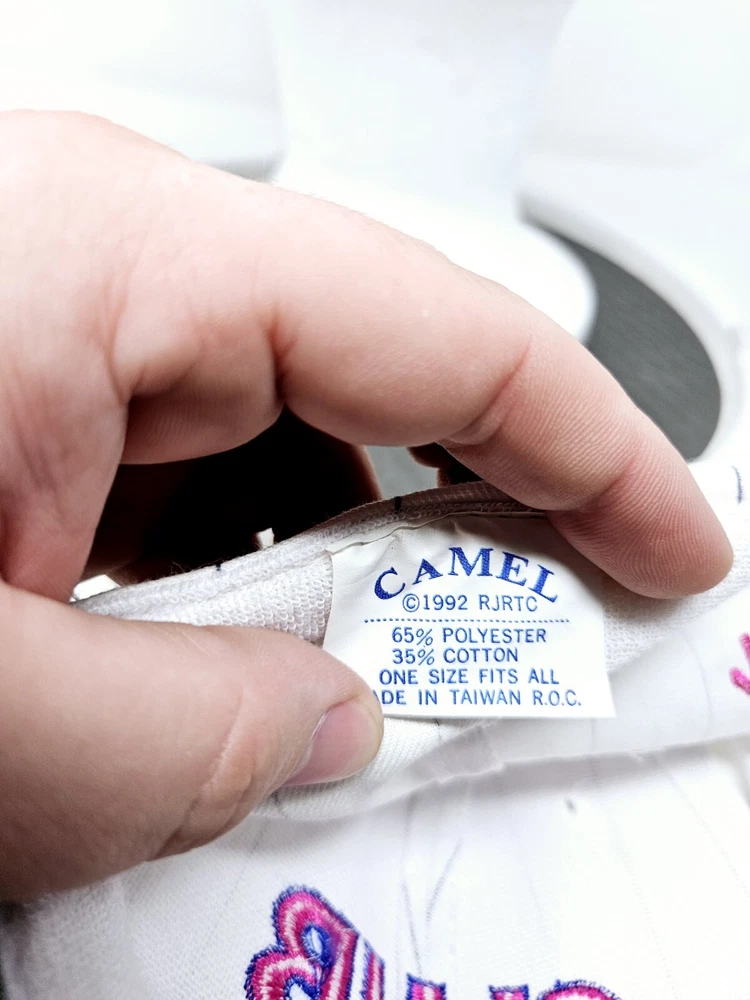 Brand: Camel Fabric Type: Canvas Character: Camel Country/Region of Manufacture: Taiwan Color: White Department: Men Theme: 90s Size: One Size Style: Snapback Occasion: Casual, Workwear Pattern: Striped Features: Adjustable, Breathable Material: Cotton, Polyester Vintage: Yes