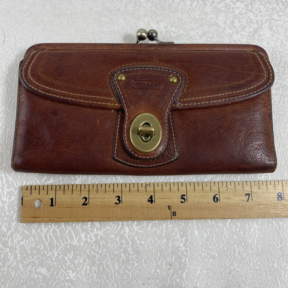 Vintage Coach Leather Wallet Pre-Owned Review Photos For Condition And Measurements 65th Anniversary Edition