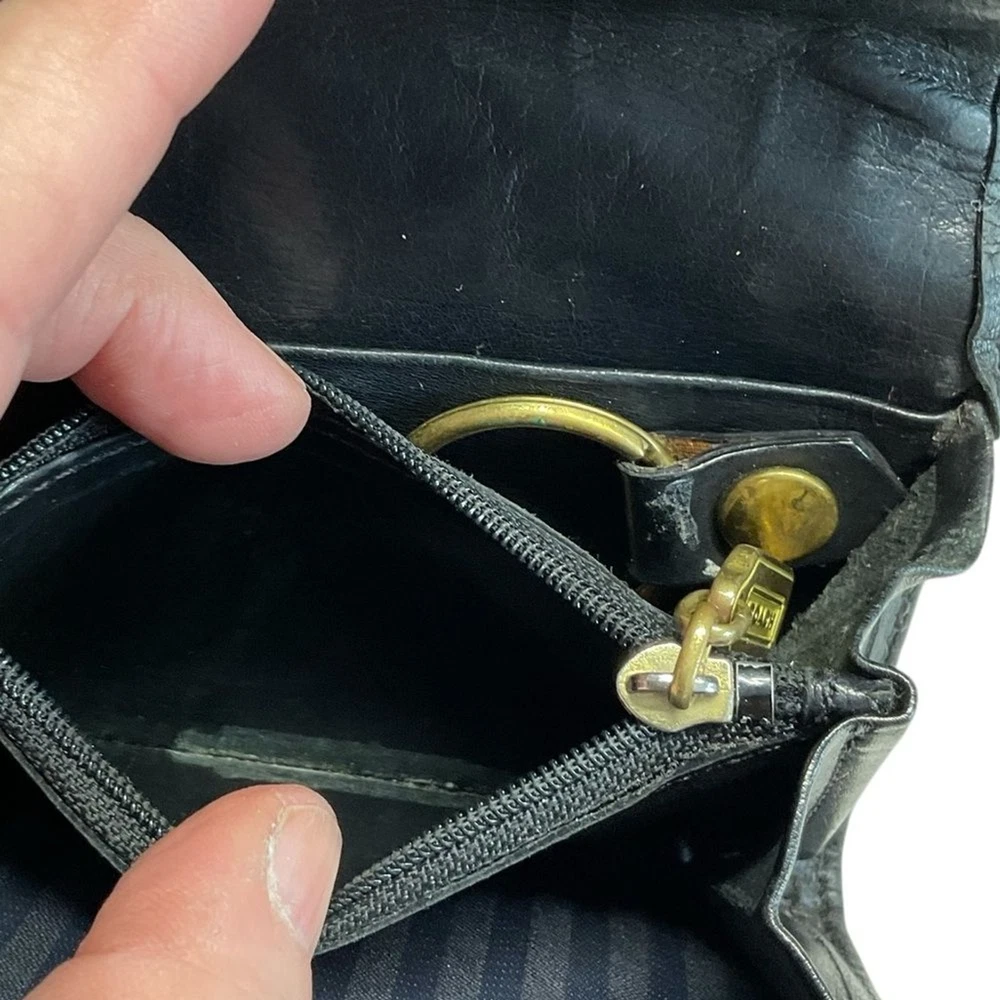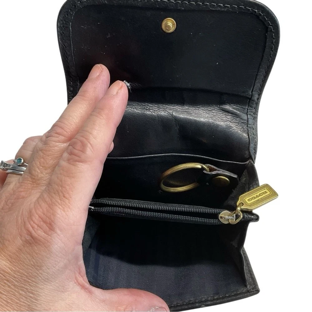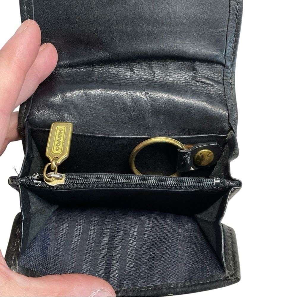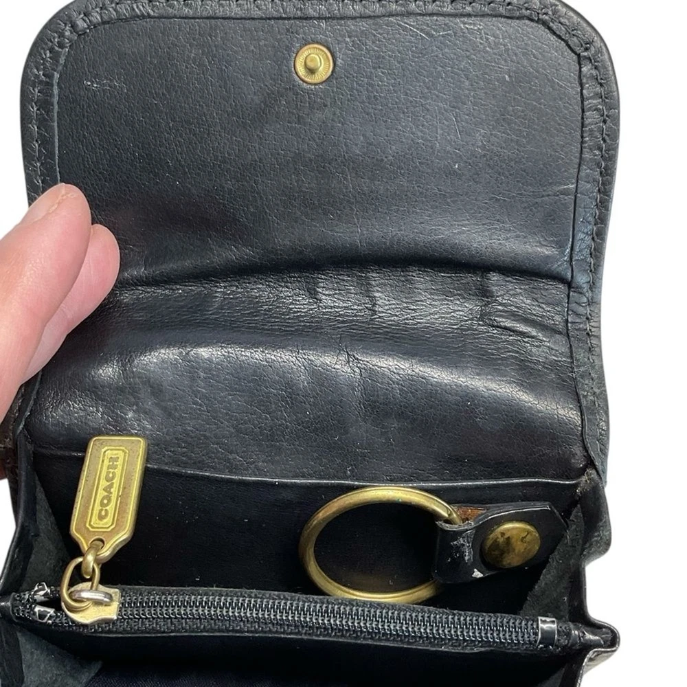 Vintage Coach Black Natural Grain Pebbled Leather Multi-Function Wallet Features: Rare Find - Vintage from the 90s Outside Slip Pocket Snap Front Closure Detachable Key Ring Zippered Coin Compartment Leather has been conditioned Great pre-owned condition: see photos details