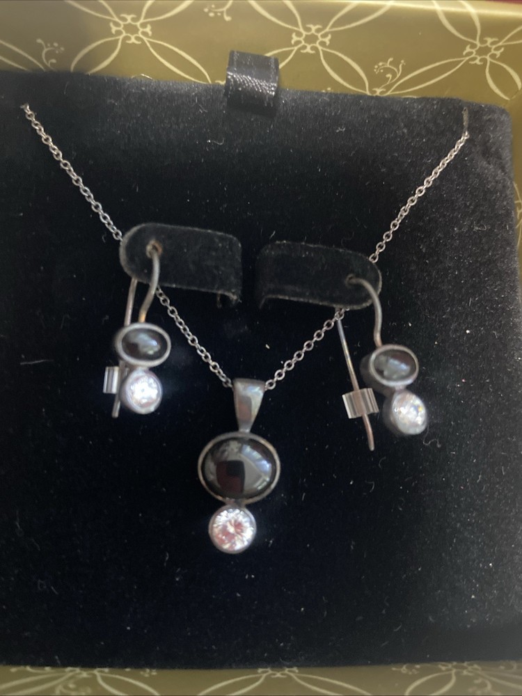 Absolutely love this elegant vintage set! The sterling silver and black onyx combo is timeless, with just the right touch of sparkle from the CZ accents. The 18" necklace sits perfectly, and the matching earrings add a polished finish. Perfect for dressing up or adding a classy touch to everyday wear. Feels high-quality and looks far more expensive than it is—great find!