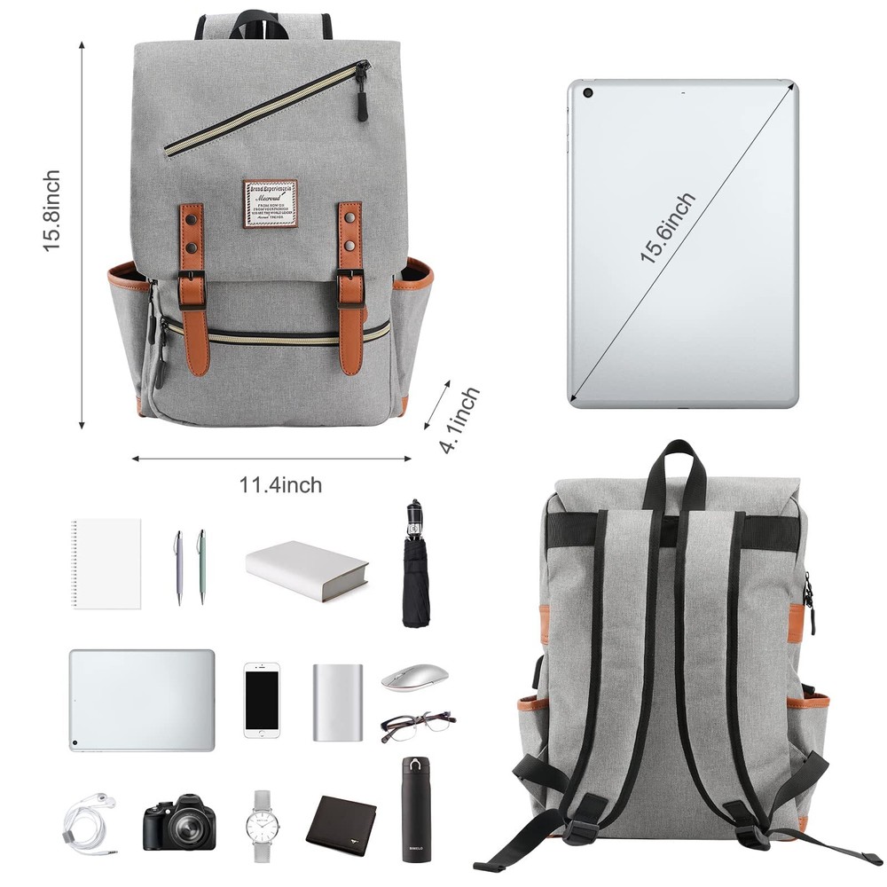 PREMIUM QUALITY MATERIAL - vintage backpack for men is made of premium lightweight tear resistant Oxford fabric and quilted polyester linear. Simple, elegant and vintage casual daypacks. Dimensions: 11.4"L x 15.8"H x 4.1"W; Capacity: 30L COMFORTABLE BACKPACK - Ensuring long-lasting performance, this vintage rucksack features adjustable padded shoulder straps and an ergonomic back panel, ensuring comfort even when carrying heavy loads. Ideal for students, workers, and travelers etc LARGE CAPACITY - This travel backpack features 6 compartments for efficient organization. 2 front zipper pockets can hold small items such as ID card, keys, earphone, etc. The main zipper compartment can hold notebook, wallet, pen, etc. Another padded main compartment comfortably fits a 15.6-inch laptop and books. And the two side pockets of the large school bookpack can put in the bottle and umbrella. Large capacity design make your life more comfortable and convenient USB CHARGING PORT - laptop backpack has an external USB charging port, gives more convenient way to charge your phone while walking. Please noted to carry a power bank when charging as the backpack doesn't power itself, the USB charging port only offers an easy access to charge VERSATILE LAPTOP BACKPACK - With its unique vintage design and fashionable color matching that never goes out of style. This school backpack also makes an excellent choice for family, friends, or yourself, ideal for occasions like Thanksgiving, Christmas, New Year's, or back-to-school. The lightweight stylish backpack serves as a versatile laptop bag, teacher bag, business bag, or work bag, meeting all your daily needs.