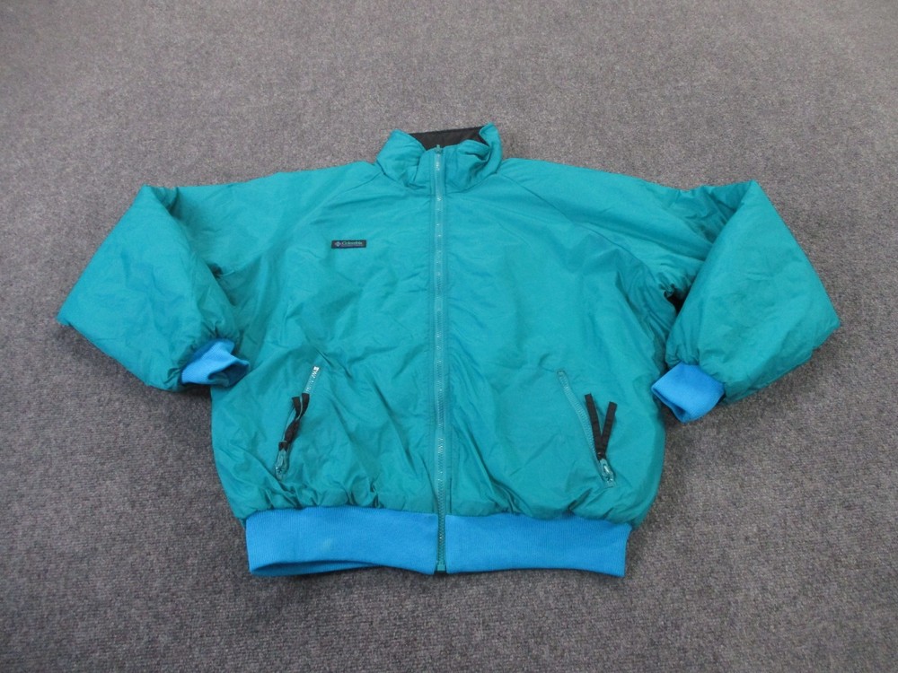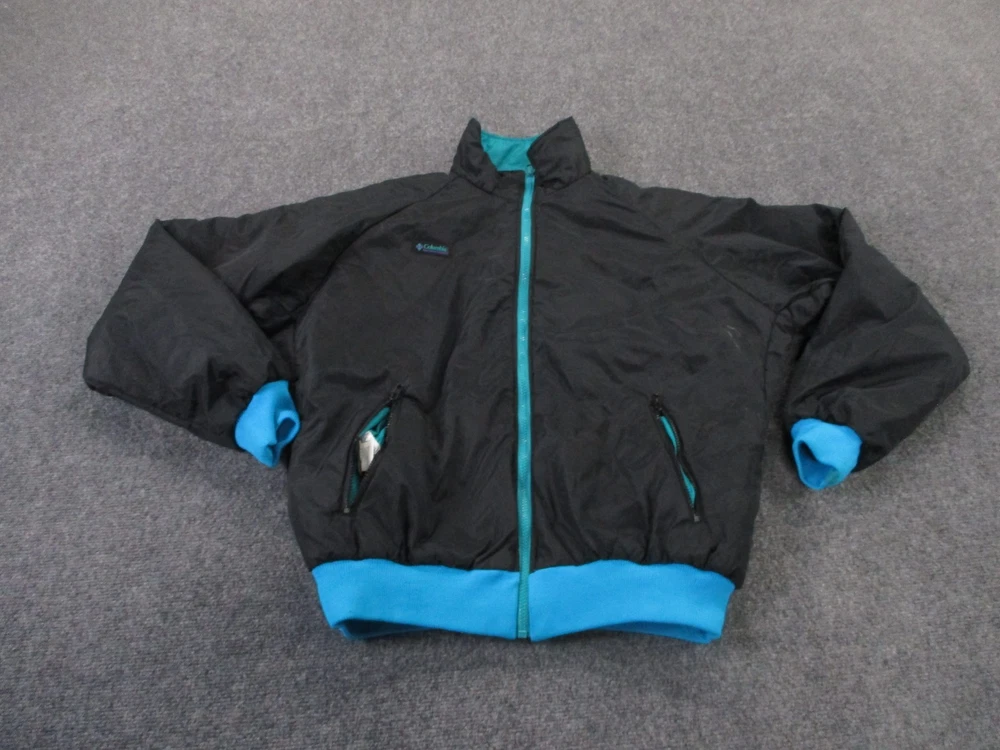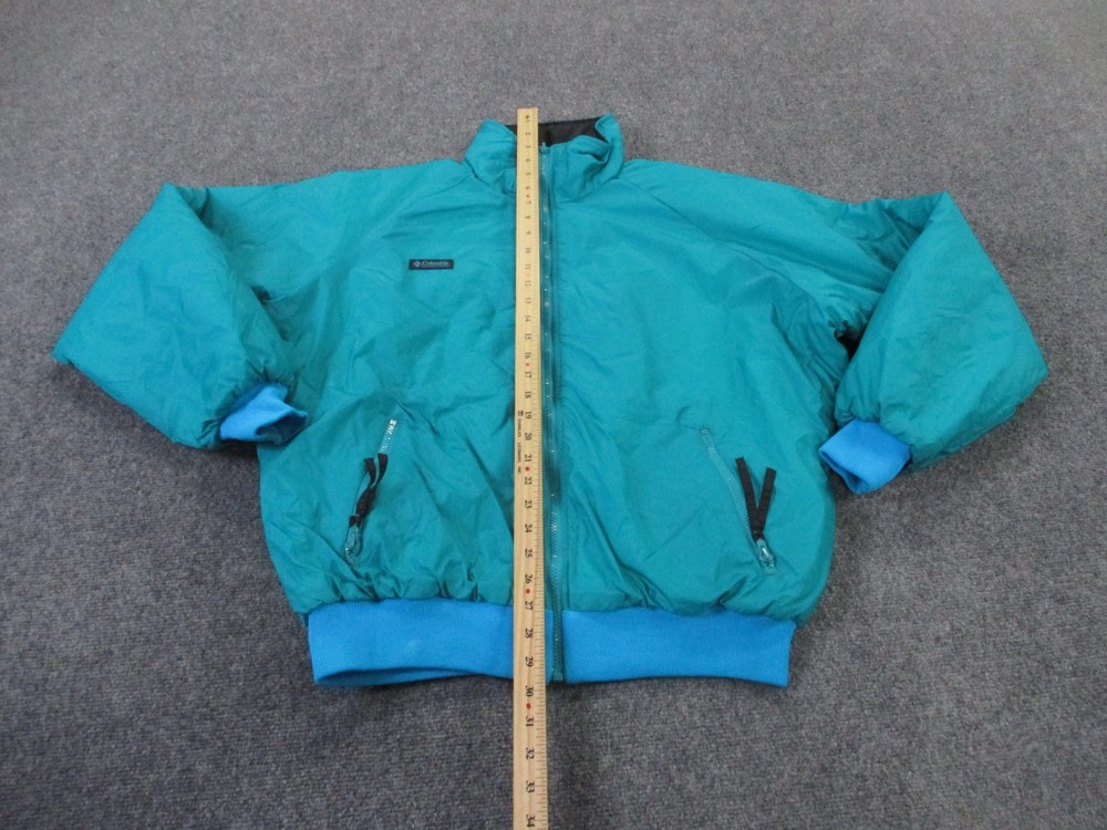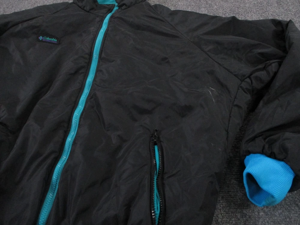 For sale is a used Columbia Jacket Measurements: Please see above photos for all measurements. Compare to your favorite garments for best fit. Marks on front blue side. Marks on front and back black side. I ship items out EVERY DAY so EXPECT a QUICK delivery!