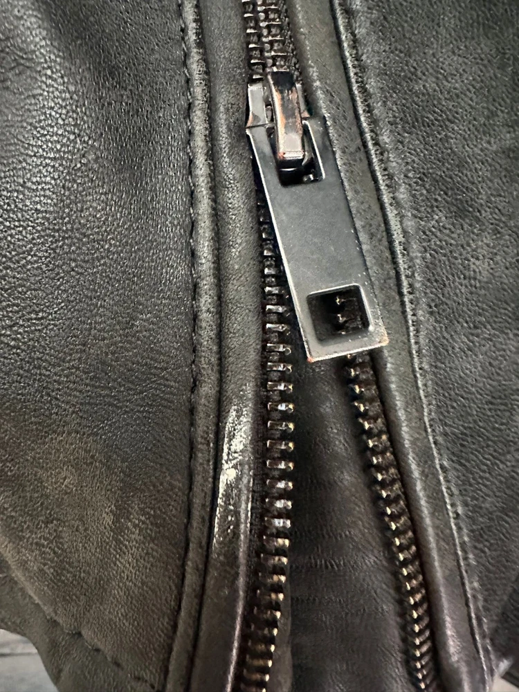 Conbipel Leather jacket Used Man size 52 Black LLV373 Worn Missing Buttons Conbipel Leather jacket Used Man size 52 Black LLV373 Worn Missing Buttons