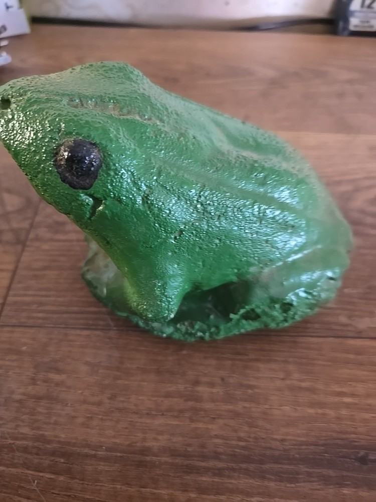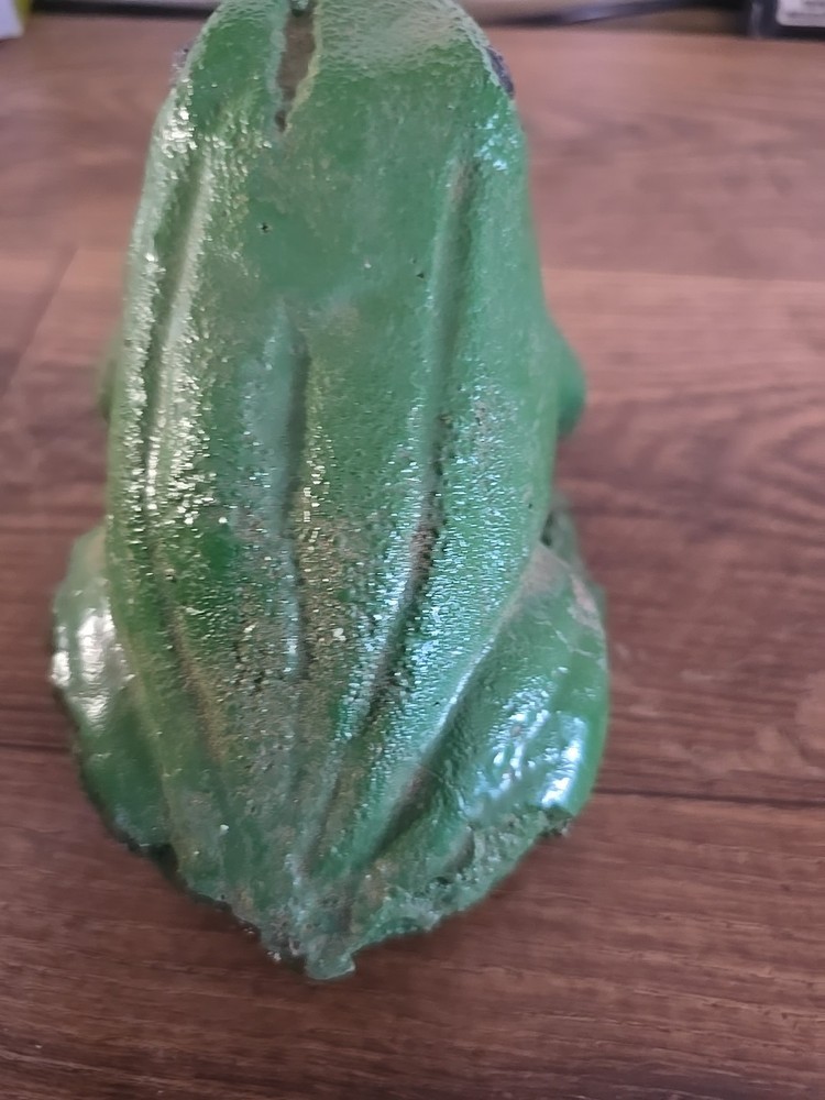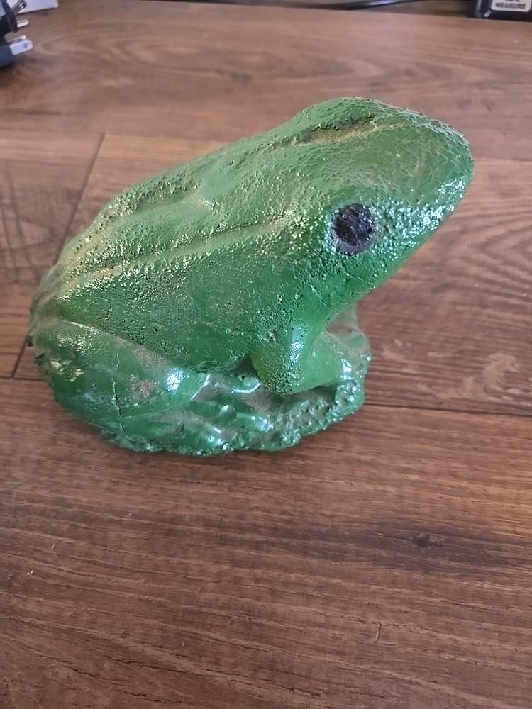 A vintage frog cement sculpture yard art toad statue, made of cement. This concrete sculpture is designed for home and garden decor, adding a unique touch to outdoor spaces.